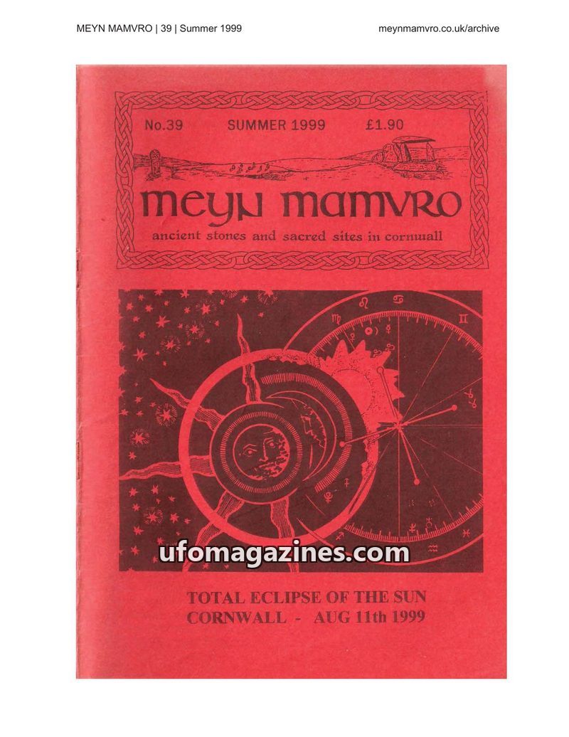 This issue of Meyn Mamvro focuses on the total solar eclipse of August 11th, 1999, in Cornwall. It covers the astronomical aspects, the astrological interpretations, and the histor