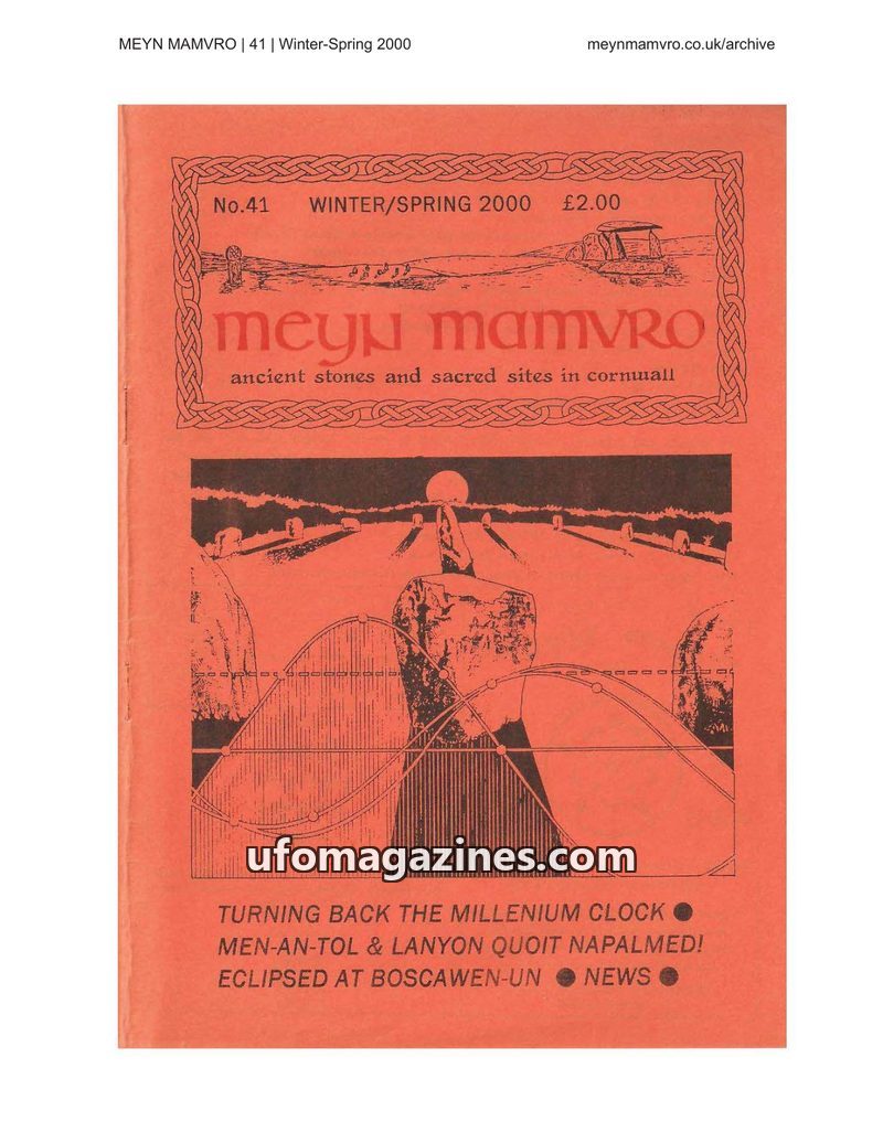 This issue of Meyn Mamvro (No. 41, Winter-Spring 2000) focuses on significant events and sites in Cornwall. A major incident reported is the napalm attack on the ancient sites of M