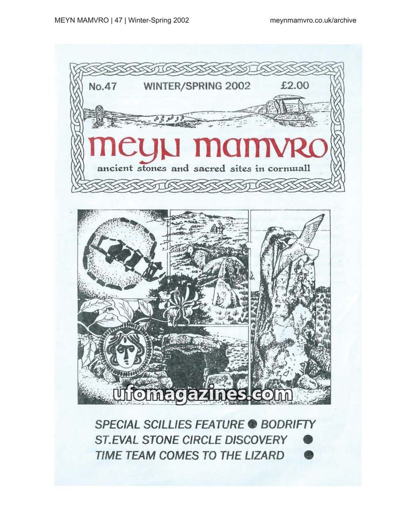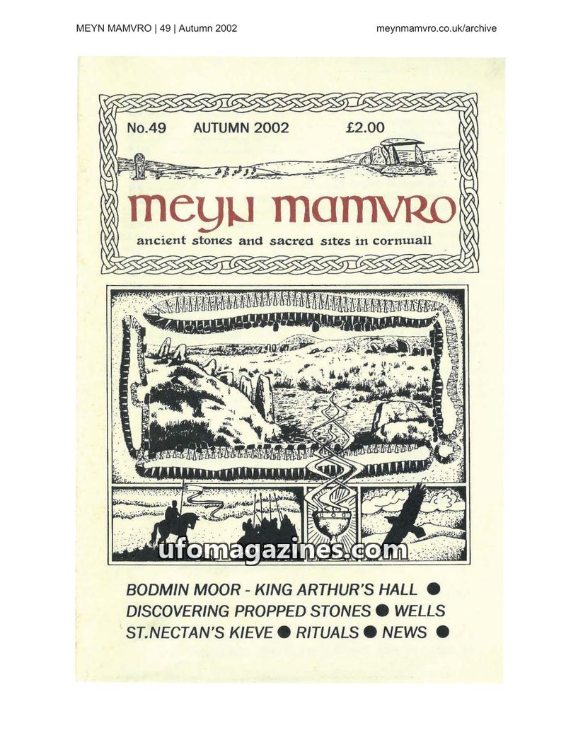 This issue of Meyn Mamvro (Winter-Spring 2002) explores various aspects of Cornish ancient sites and earth mysteries. It features a special section on the Scilly Isles, including m