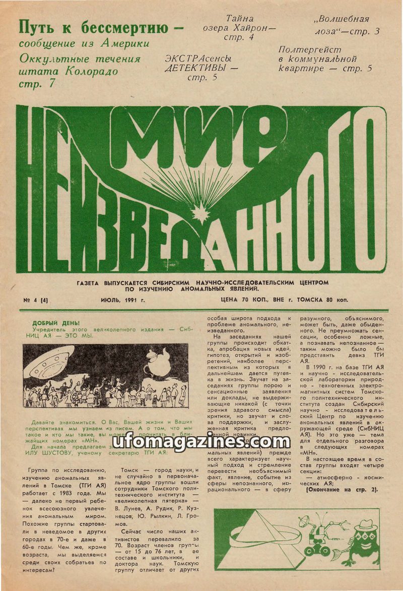 This issue of 'MIR' magazine delves into various anomalous phenomena, including the activities of the Tomsk Research Group for Anomalous Phenomena (TGI AY) and the Siberian Scienti