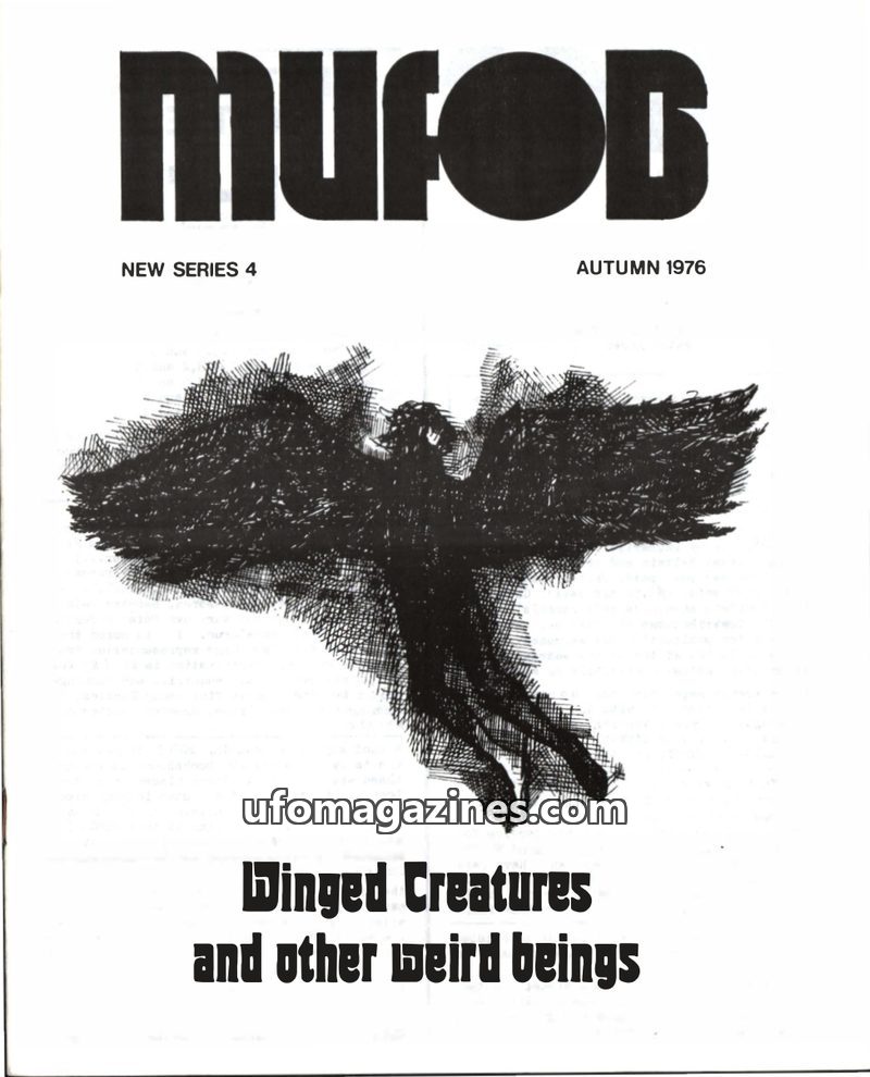 This issue of MUFOB magazine from Autumn 1976 focuses on 'Winged Creatures and other weird beings'. It details a remarkable series of experiences reported by a family in Manchester