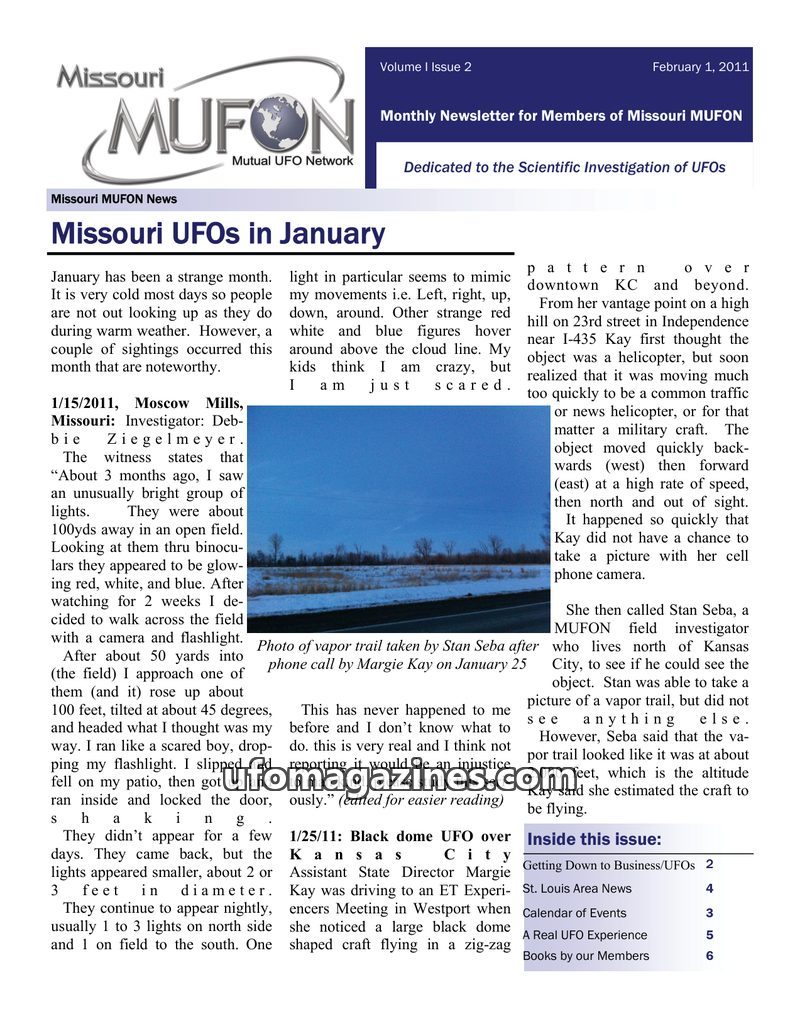 MUFON Missouri newsletter - 2011 01