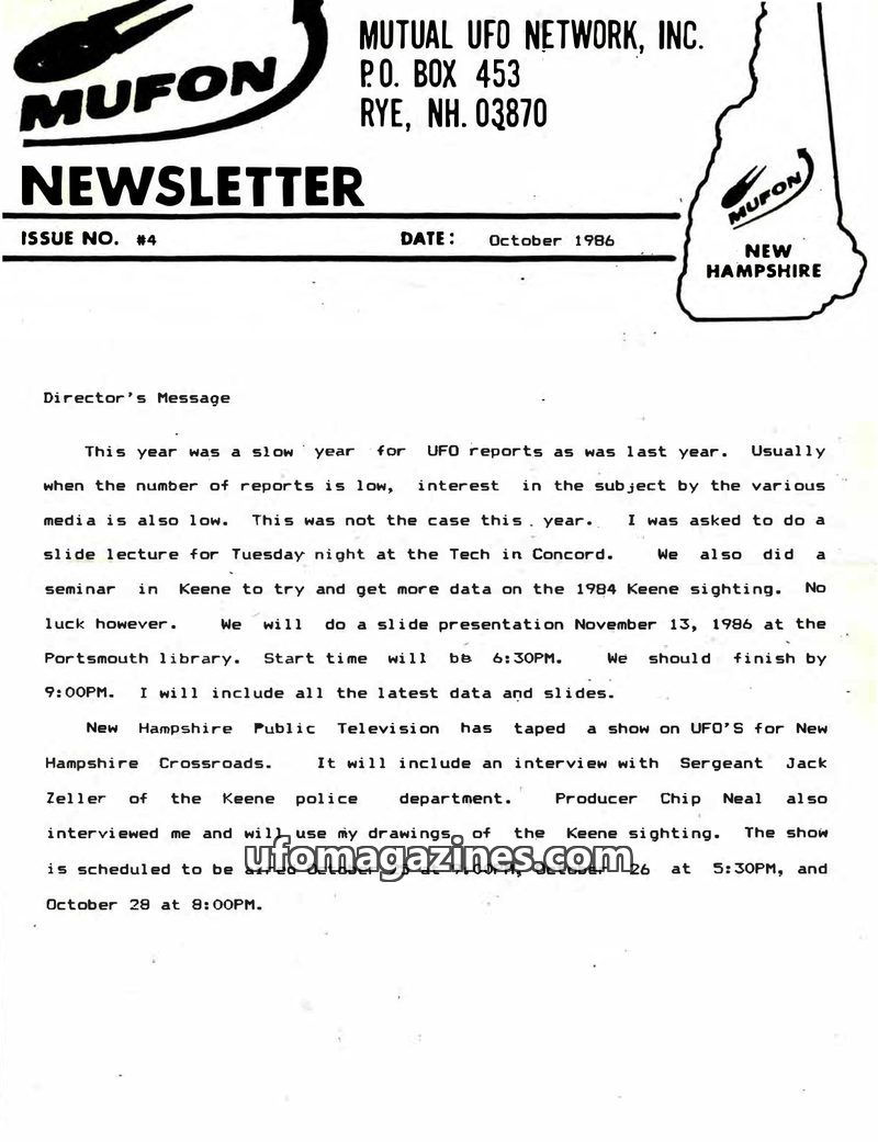 New Hampshire MUFON Newsletter - 1986 10 - No 04