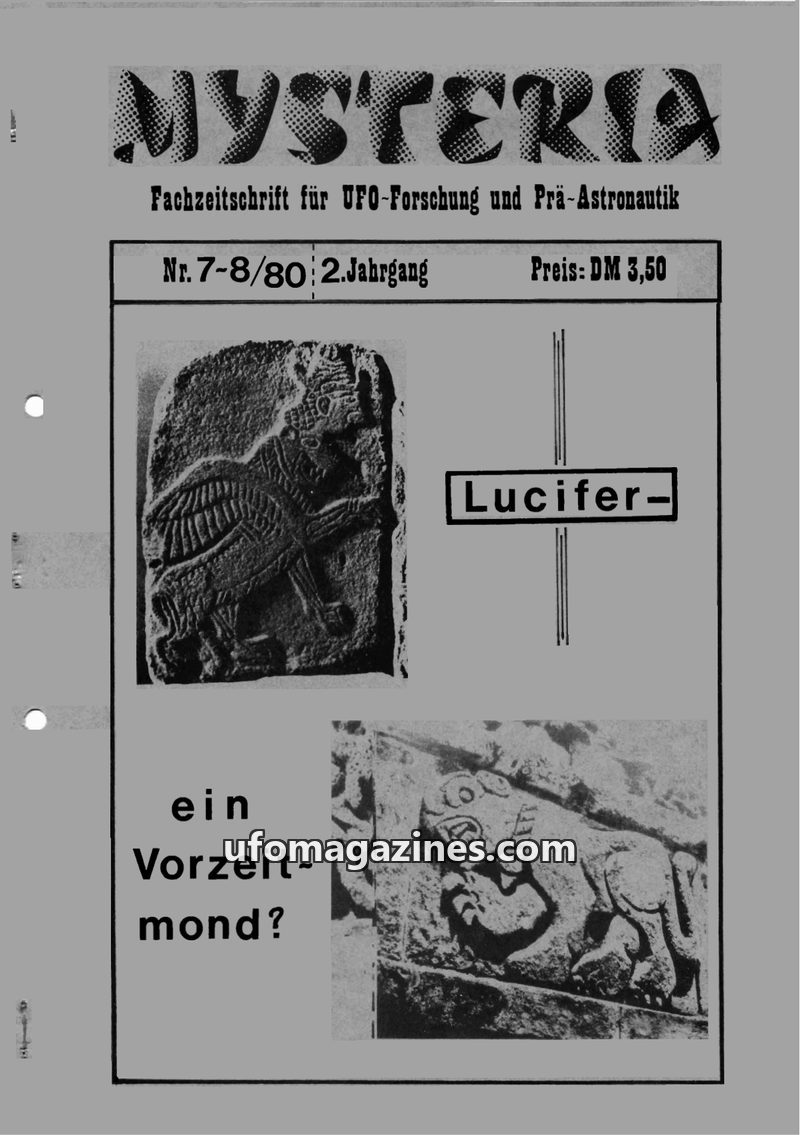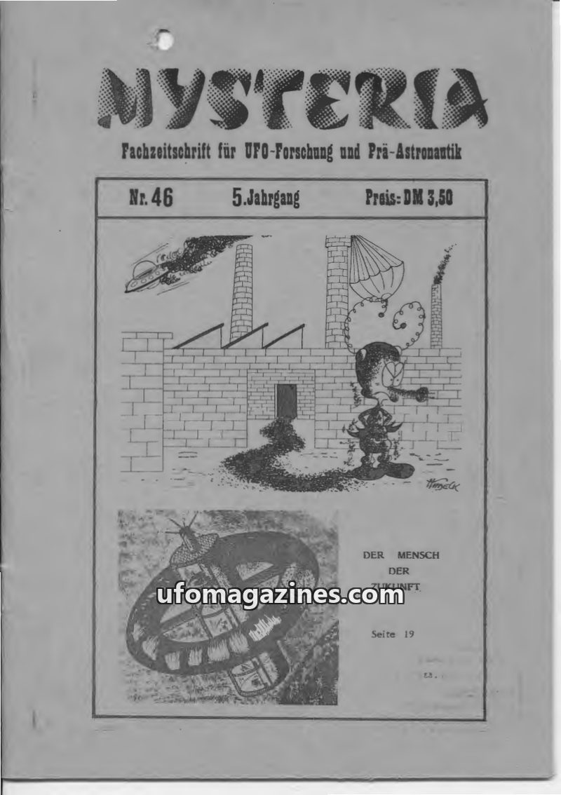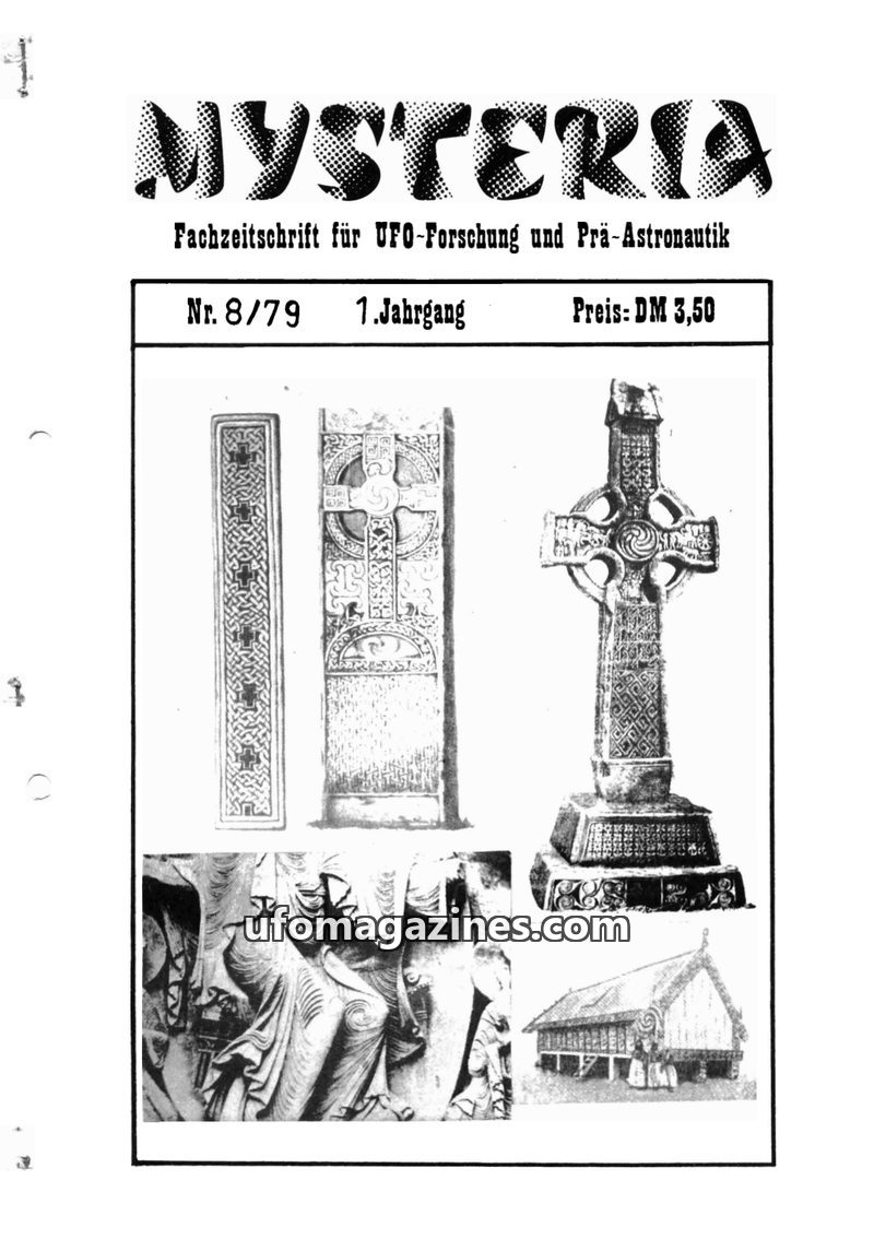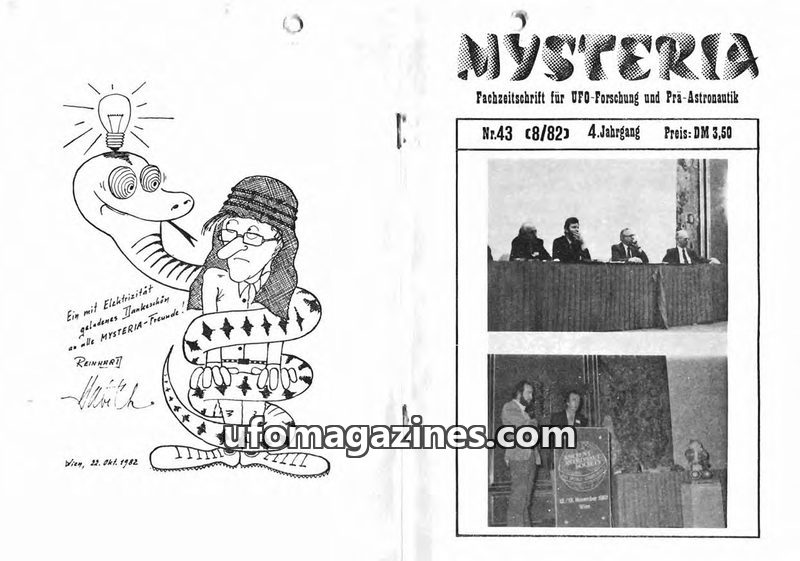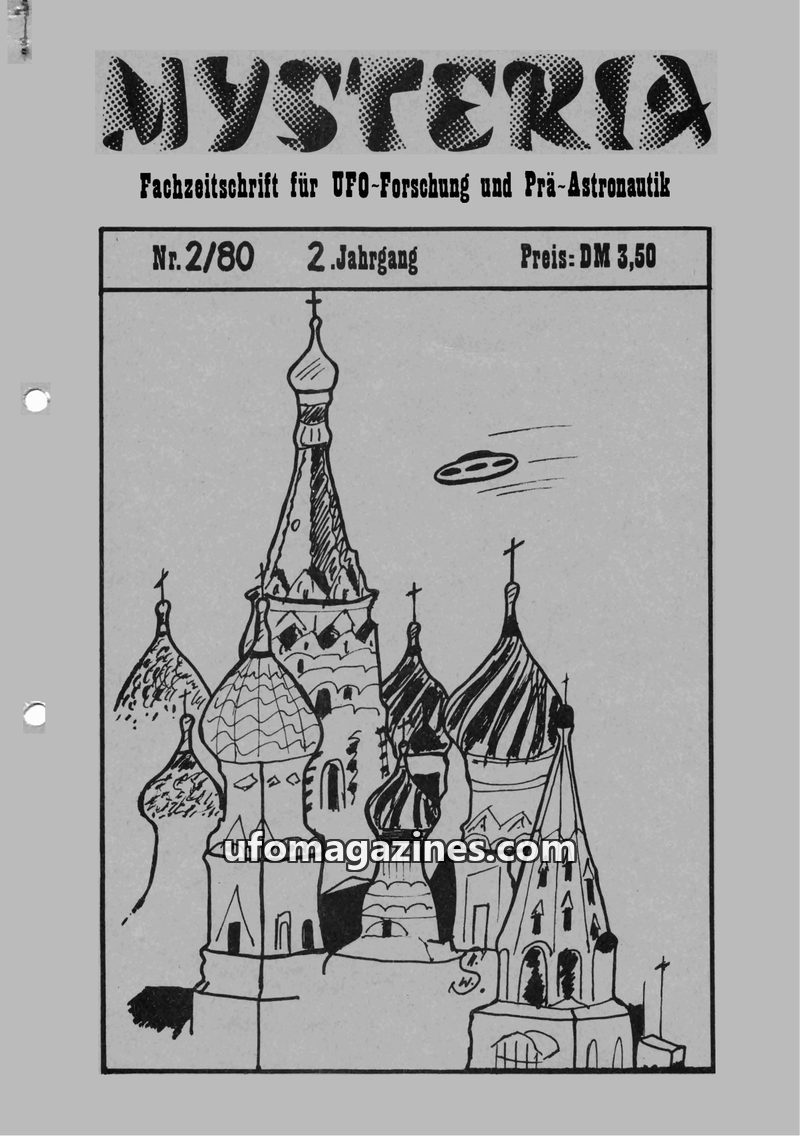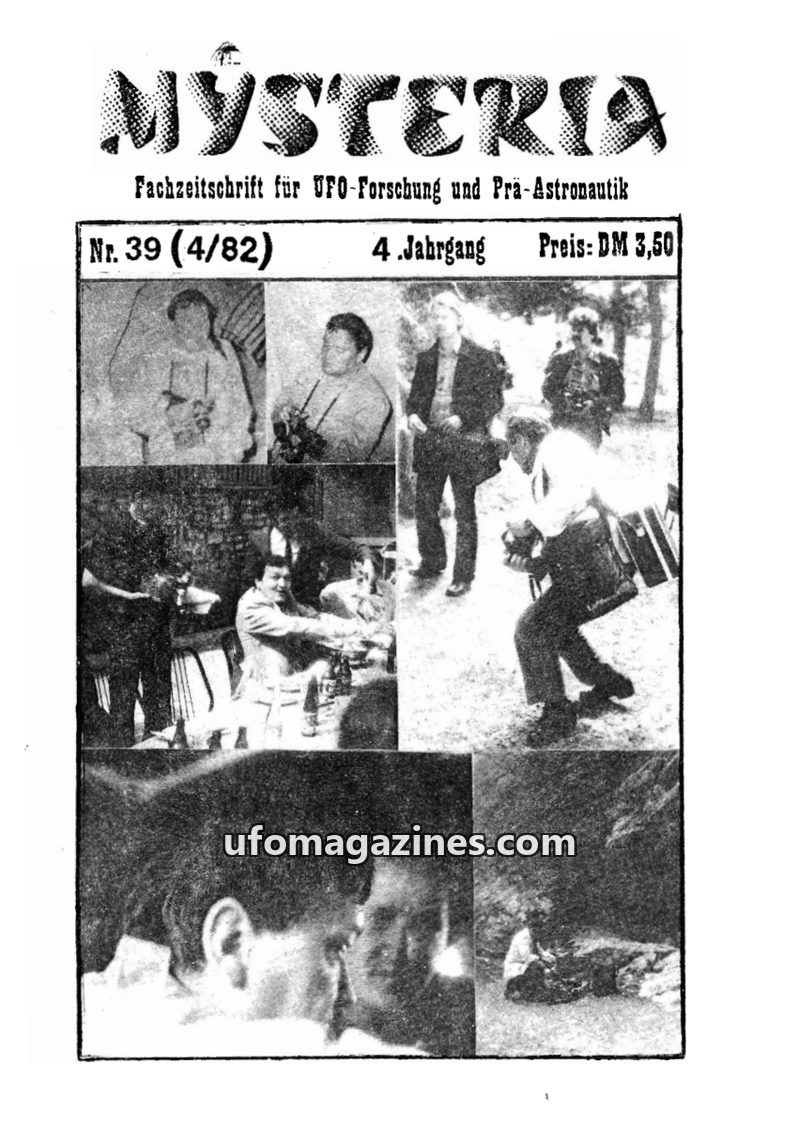 This issue of MYSTERIA focuses on UFO research and pre-astronautics. It includes a TV analysis of Erich von Däniken's work, a detailed account of an Austrian Air Force attempt to i