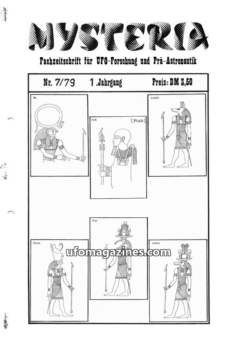 This issue of MYSTERIA, a journal for UFO research and pre-astronautics, delves into ancient civilizations and potential extraterrestrial influences. Articles discuss Egyptian deit