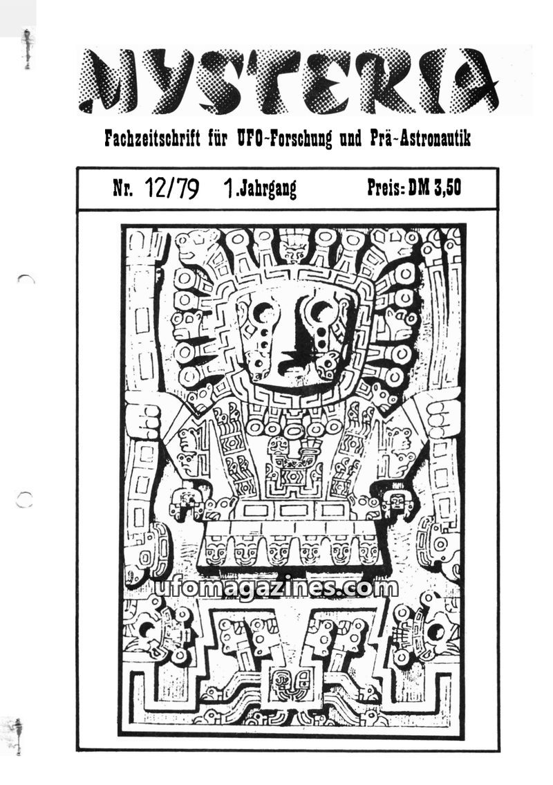 This issue of MYSTERIA, a German journal for UFO research and pre-astronautics, features articles on a reported UFO encounter during the 1978 South America Rallye, the discovery an