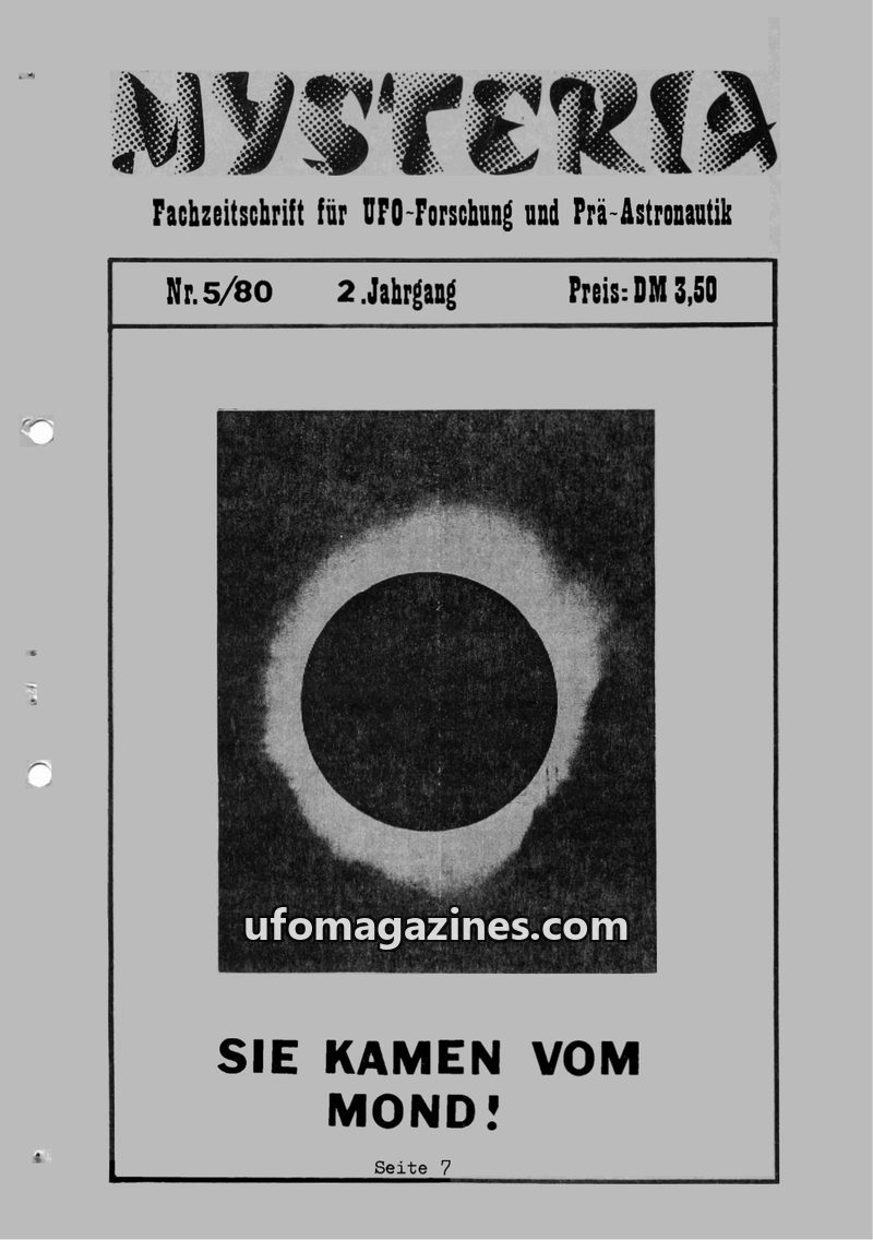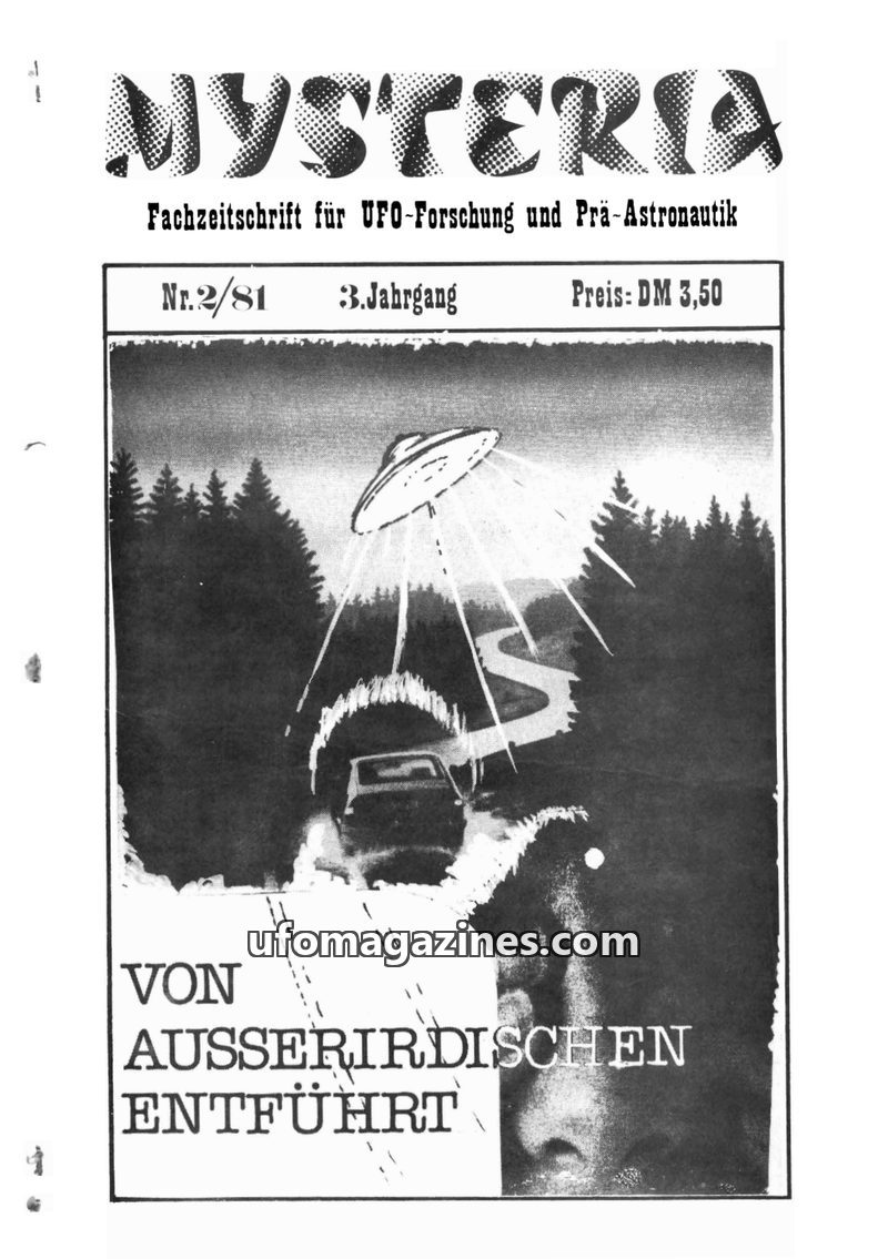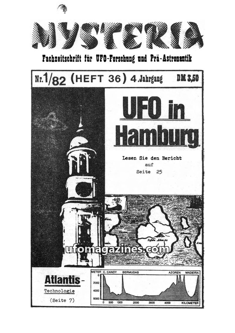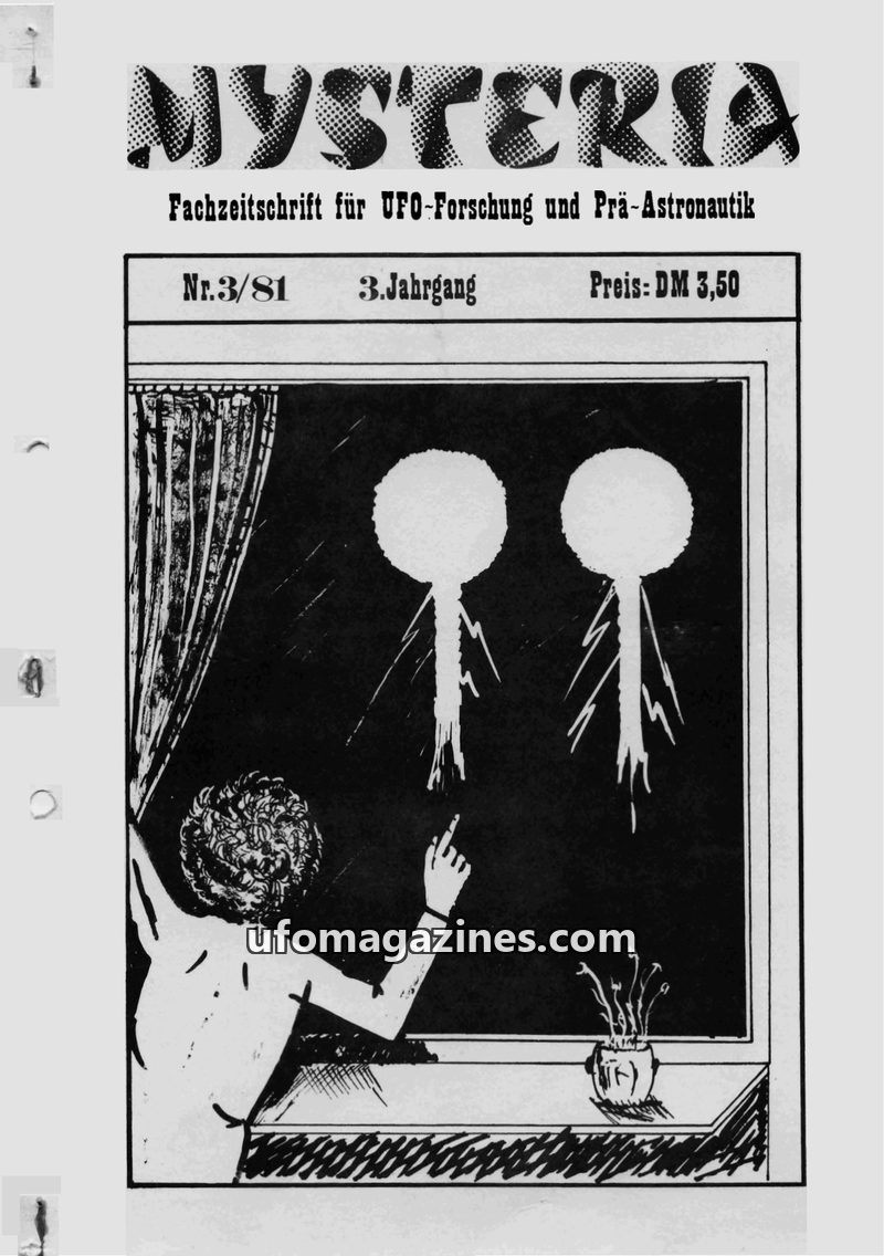 This issue of MYSTERIA, a German journal for UFO research, delves into various UFO-related topics. It includes a detailed discussion and debate surrounding a UFO sighting in Kiel,