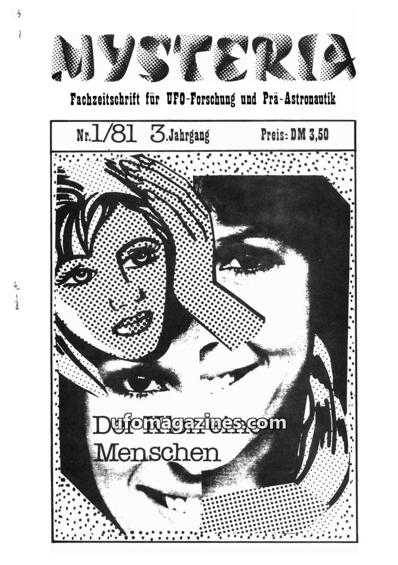 This issue of MYSTERIA delves into various mysteries, including UFO sightings in Bern, Switzerland, and a commentary on media reporting of UFO phenomena. It extensively explores th