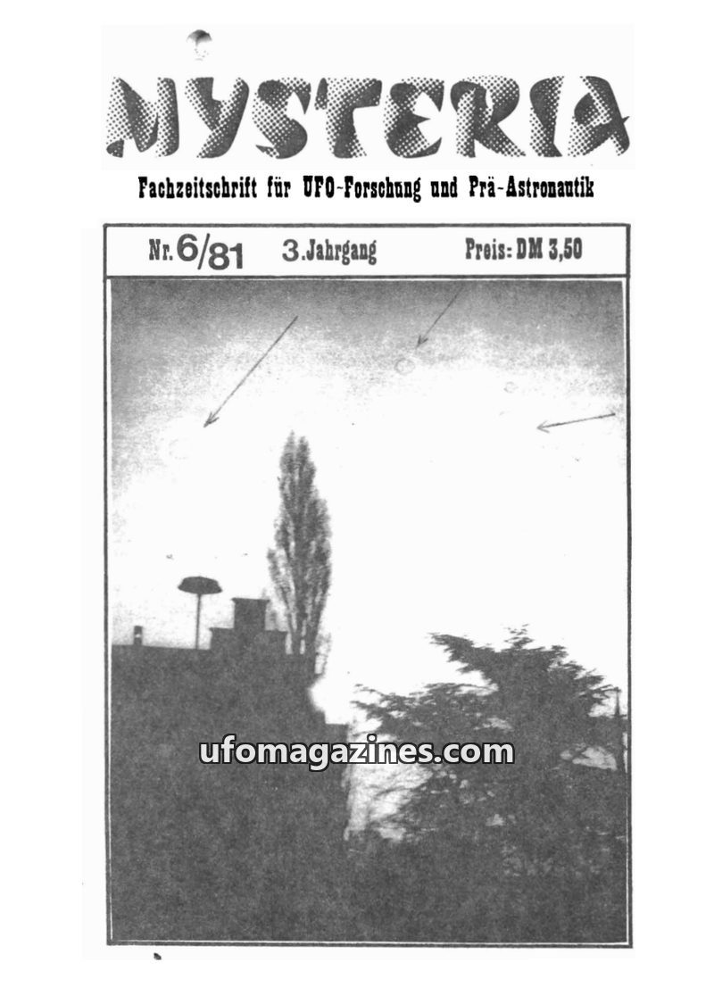 This issue of MYSTERIA magazine, dated 7/81, focuses on debunking UFO claims and exploring UFO research. A significant article by Klaus Webner reveals that a widely reported 'flyin