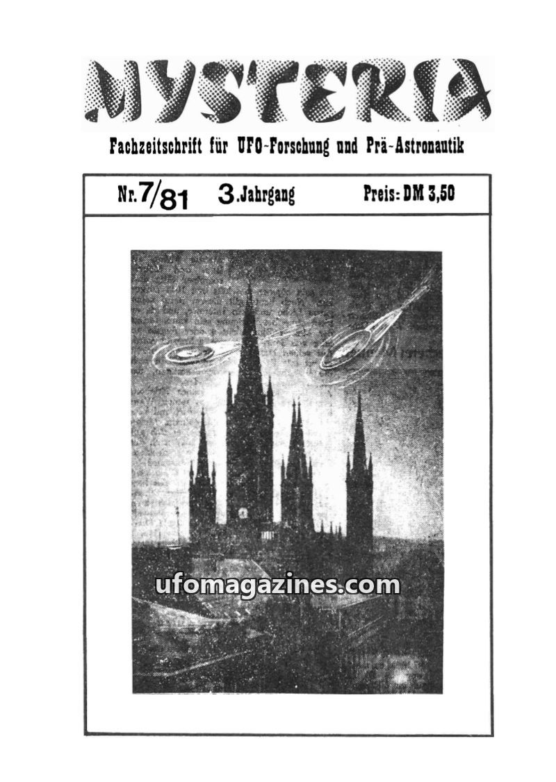 This issue of MYSTERIA delves into ancient history and extraterrestrial theories. It discusses the legendary city of Asciburgium (modern Duisburg) as a major trading hub connecting