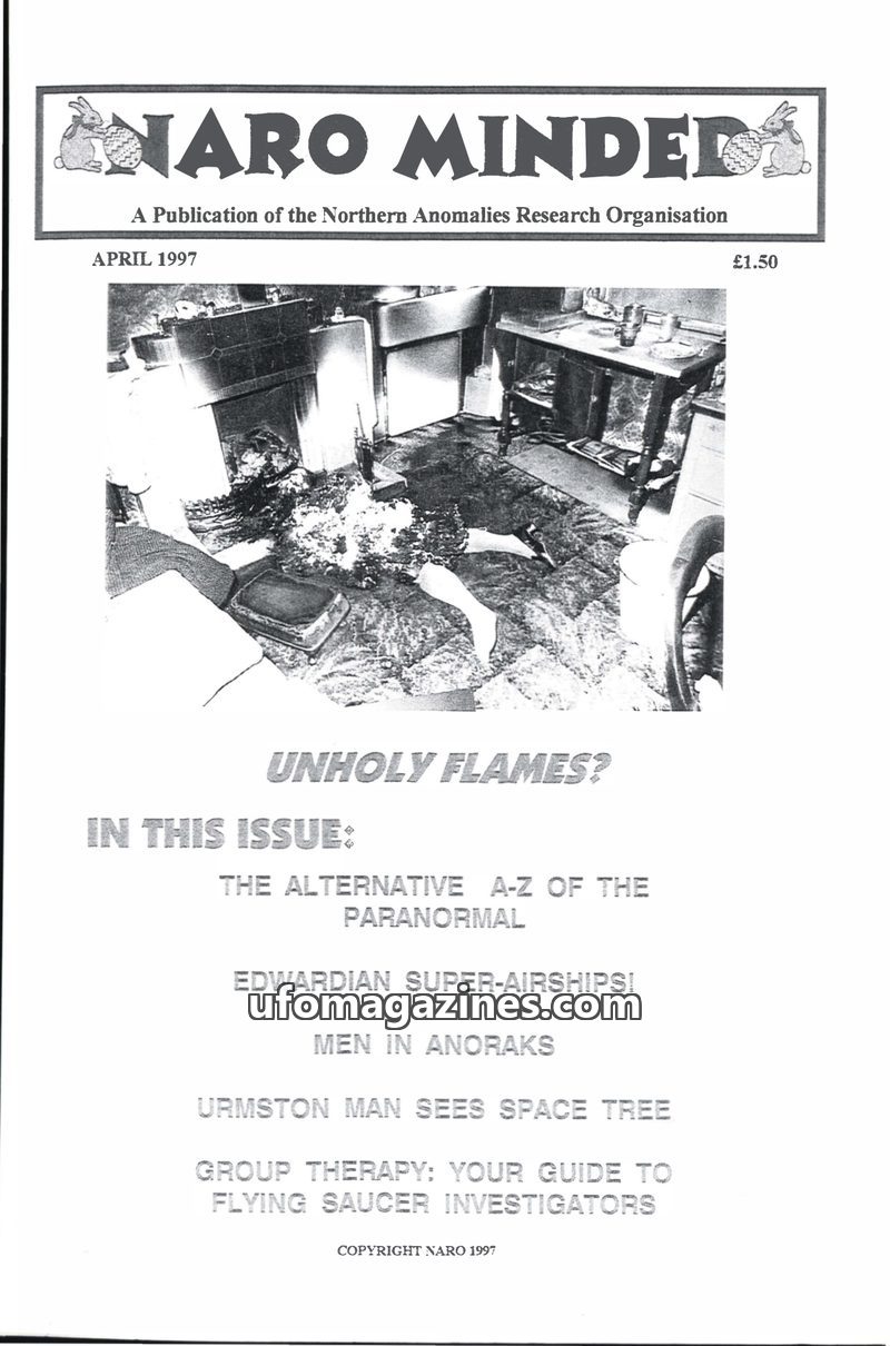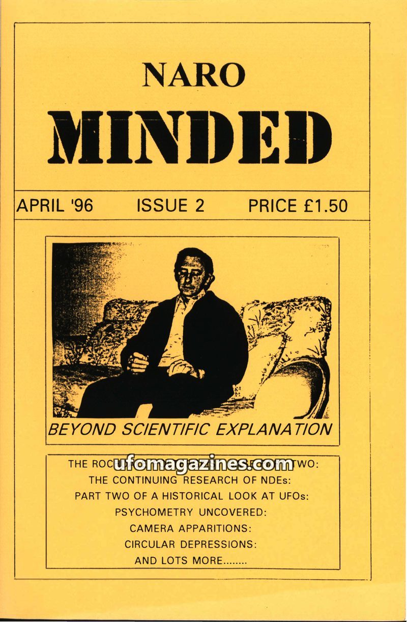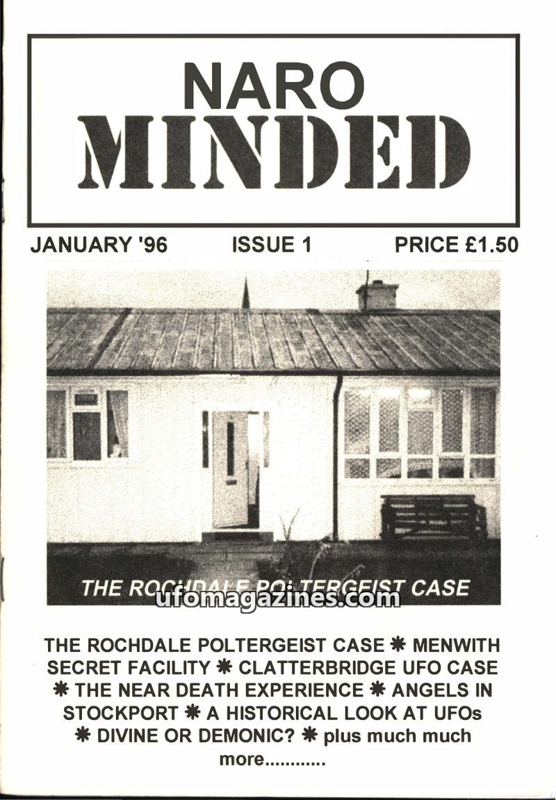 This issue of NARO MINDED features several paranormal investigations, including the Rochdale Poltergeist Case involving water phenomena and alleged levitation, and a report on the