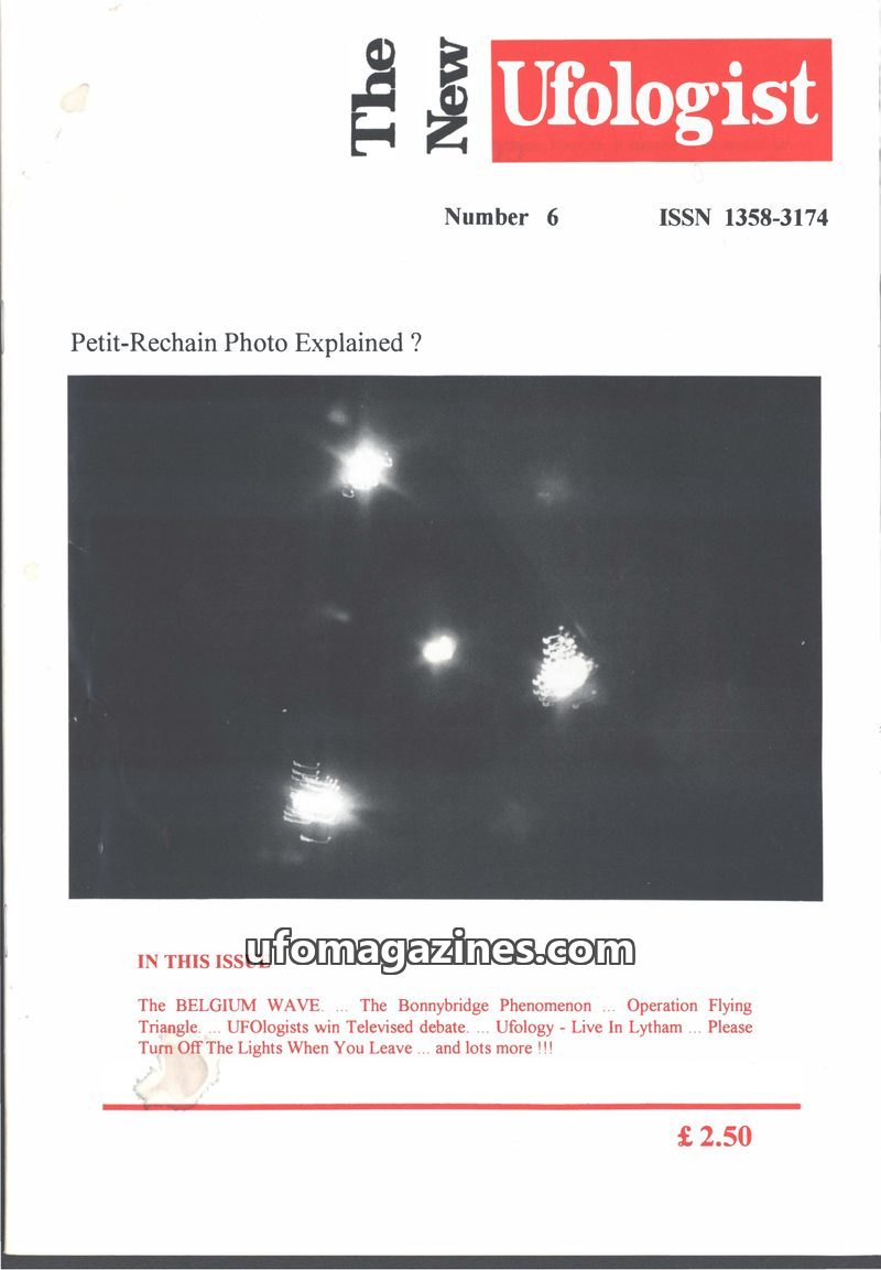 This issue of The New Ufologist focuses on the 'Belgium Wave' of UFO sightings from 1989-1990. It features articles analyzing the Petit-Rechain photo, the Bonnybridge phenomenon, a