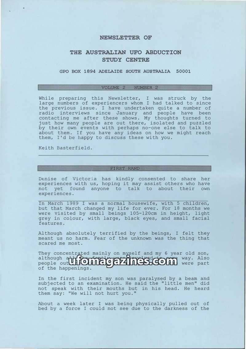 Newsletter of the Australian UFO Abduction Study Centre vol 2 no 2
