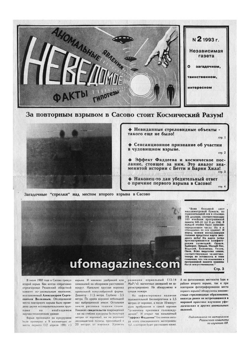This issue of 'Nevedomoe' delves into the second explosion in Sasovo in July 1992, investigating its anomalous characteristics and linking it to potential extraterrestrial involvem
