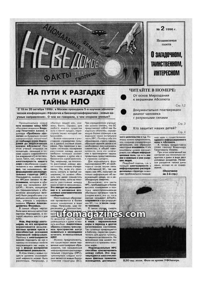 This issue of 'Nezavisimaya Gazeta' delves into the mysteries of UFOs and anomalous phenomena. It discusses the concept of multidimensionality and information-regulatory structures