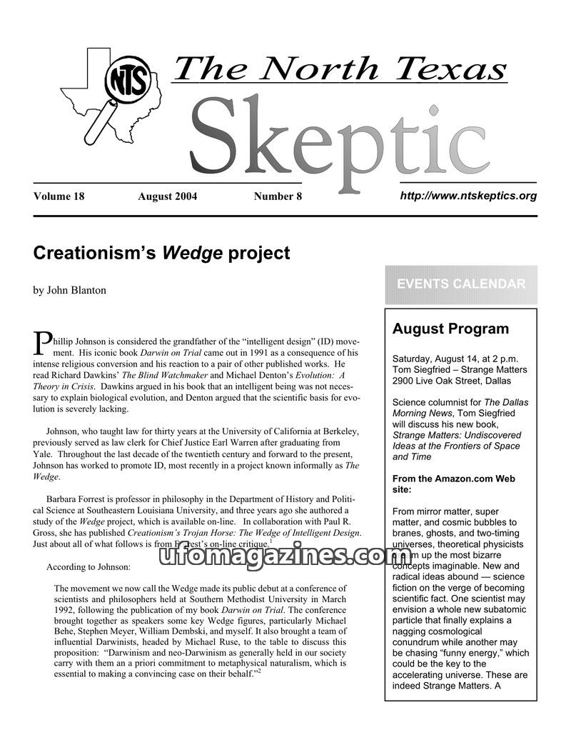 This issue of The North Texas Skeptic details Phillip Johnson's 'Wedge Project,' an initiative to promote 'intelligent design' as an alternative to Darwinism in science and educati