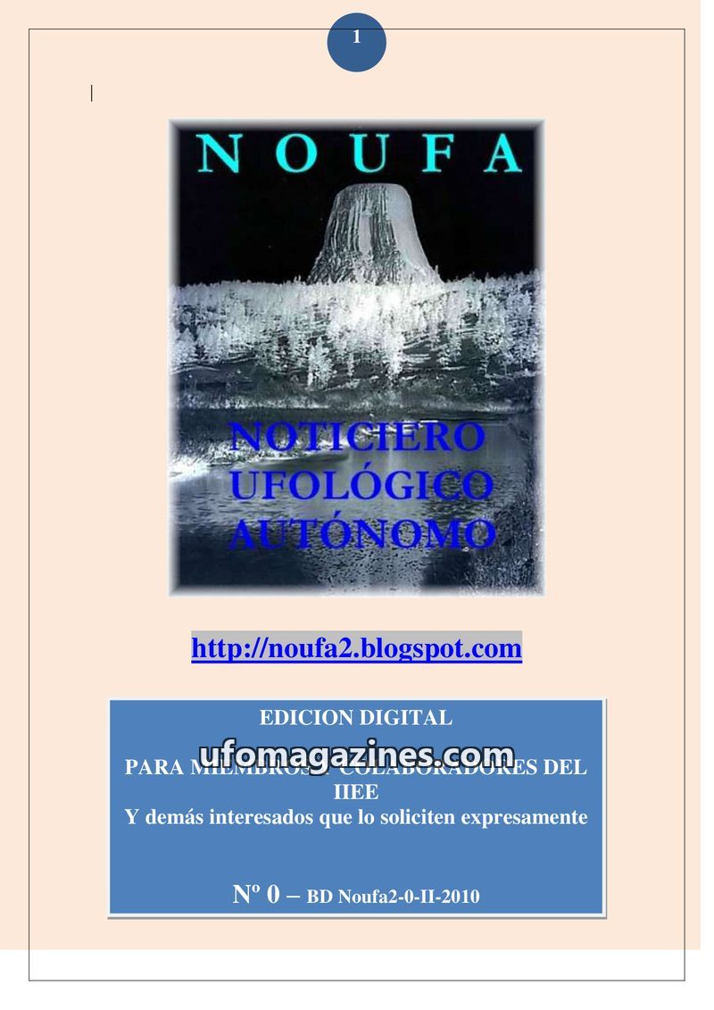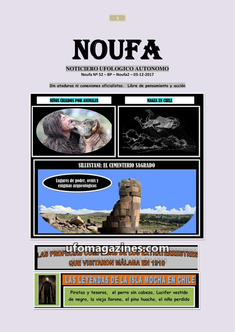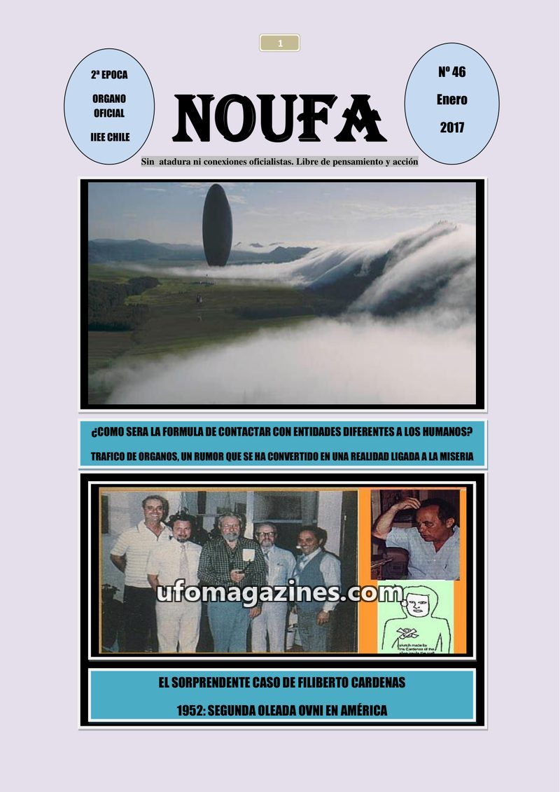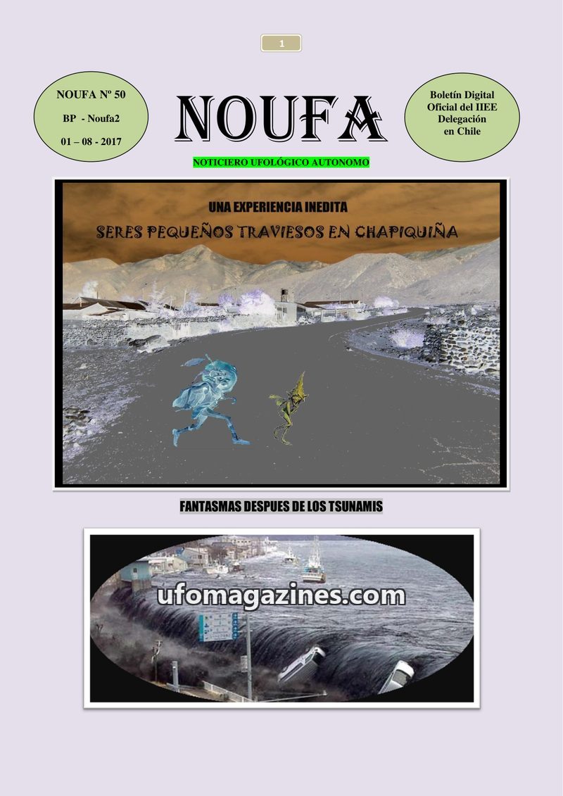 This issue of NOUFA, a digital UFOlogy newsletter, covers various topics including a personal account of small beings in Chapiquiña, paranormal phenomena following tsunamis, and a