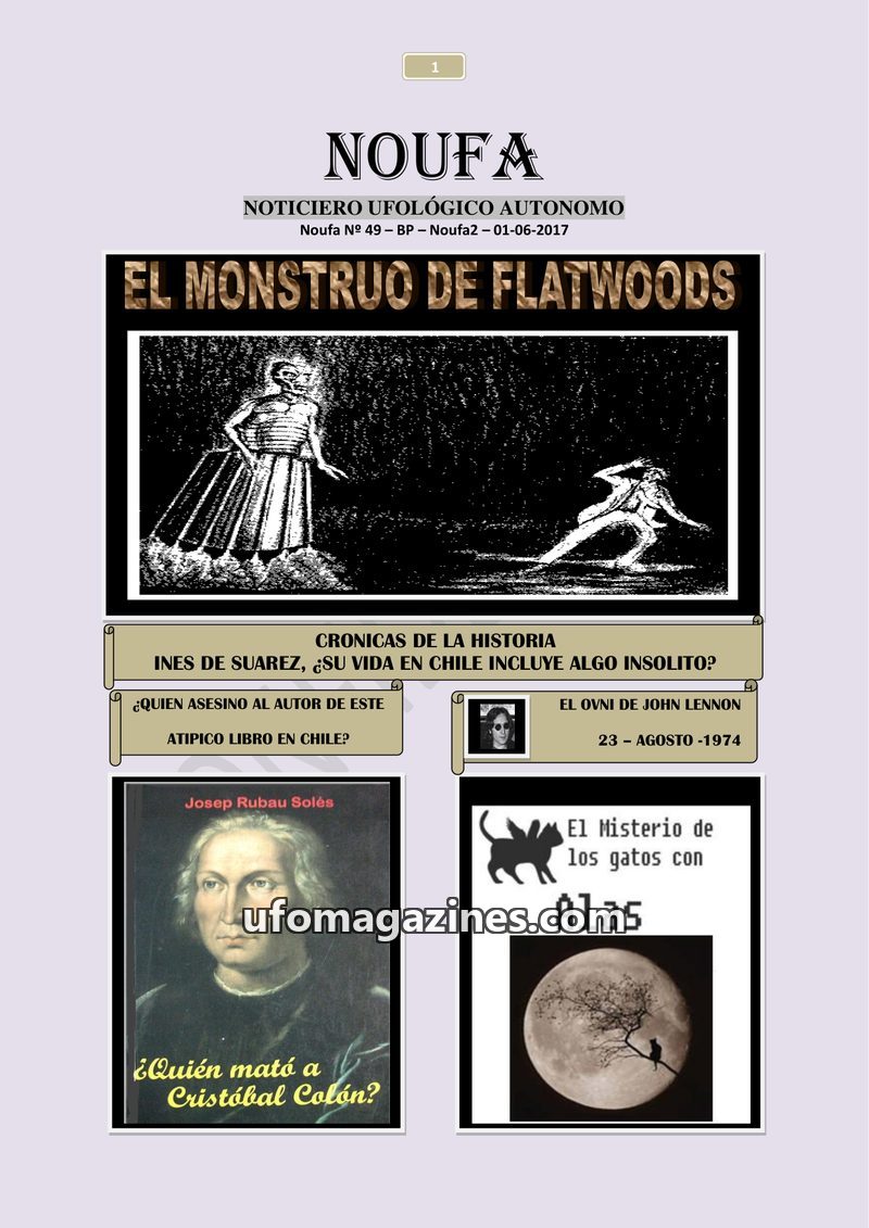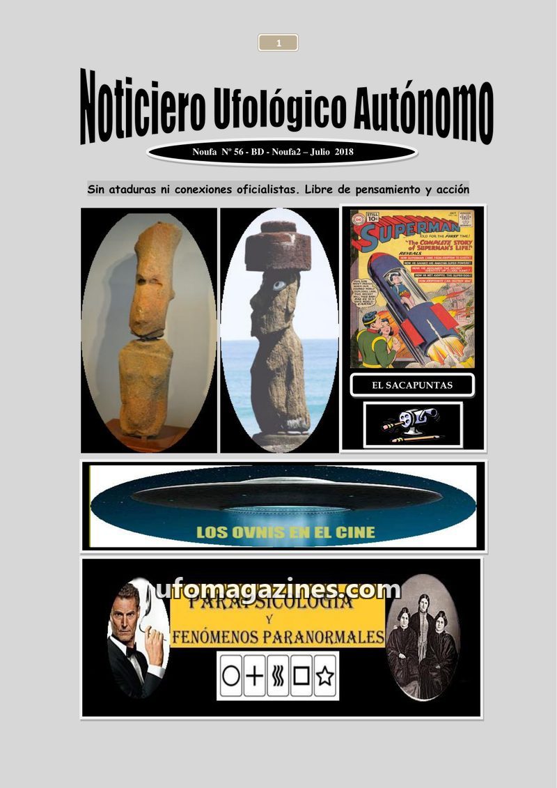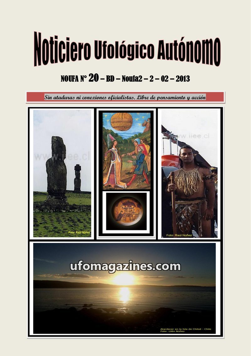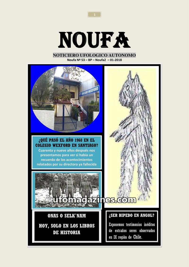 This issue of NOUFA, a digital UFOlogy newsletter, covers various topics including a personal account of small beings in Chapiquiña, paranormal phenomena following tsunamis, and a