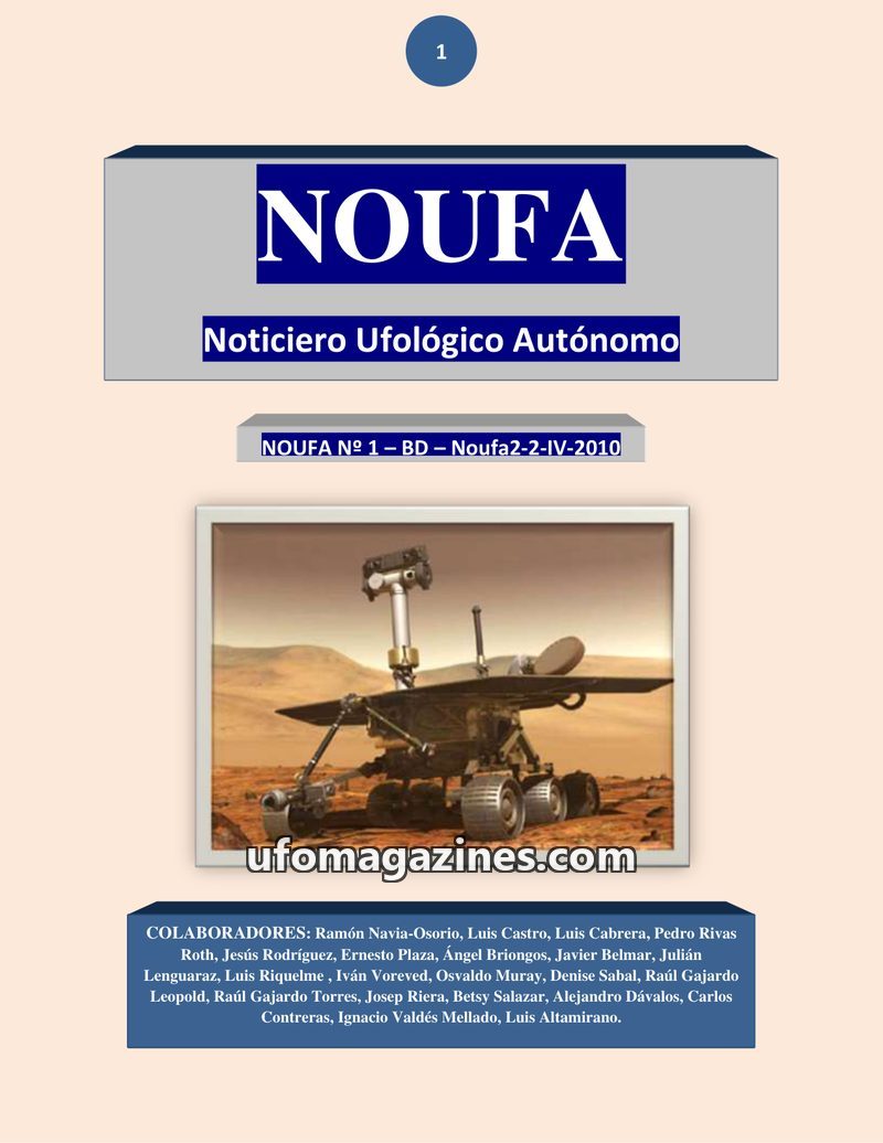 This issue of NOUFA, the first published in PDF format, focuses on ufological news and investigations. It includes a cover story on NASA's Mars Exploration Rovers, an editorial dis