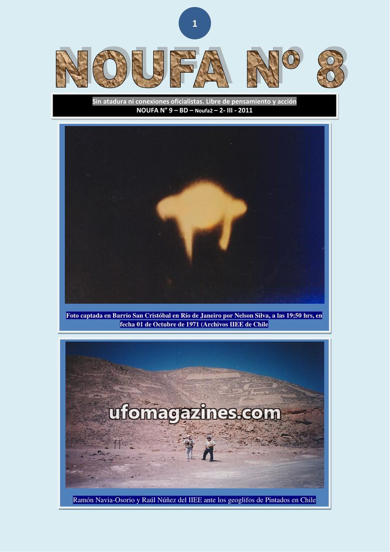 This issue of NOUFA delves into various UFO phenomena, including a 1971 sighting in Rio de Janeiro, a 1954 encounter in Missouri with alleged extraterrestrial beings, and a histori