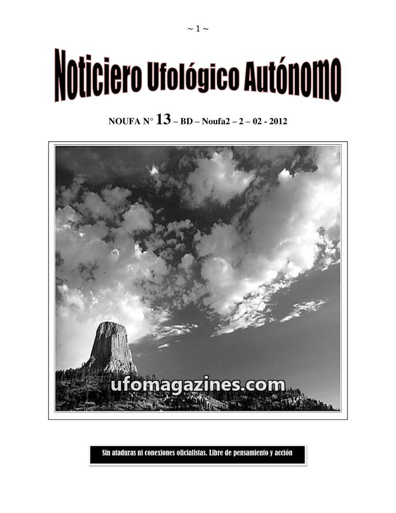 This issue of Noticiero Ufológico Autónomo from February 2012 features an editorial reflecting on the magazine's continuity and reader growth, and discusses ongoing work on unexpla
