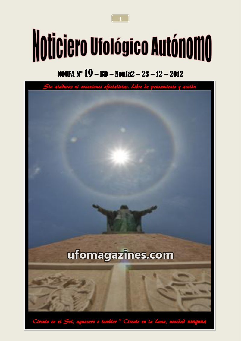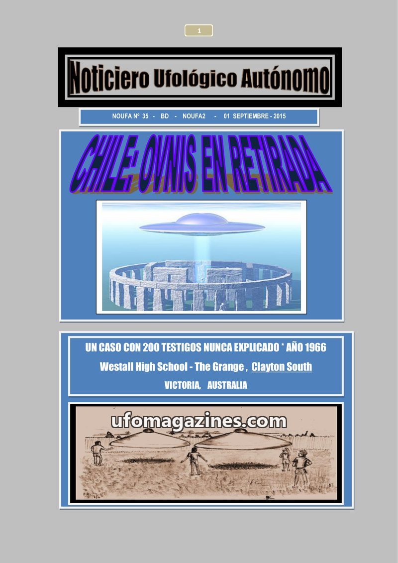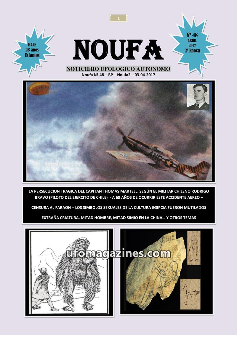 This issue of NOUFA magazine covers a variety of topics, including a reported UFO sighting in Chile involving a military sergeant, historical accounts of eclipses and their cultura