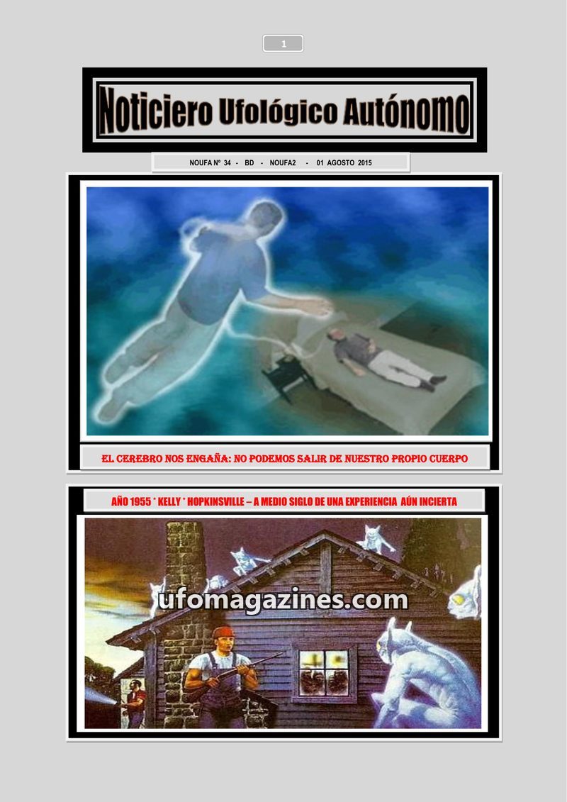 This issue of Noticiero Ufológico Autónomo delves into two main topics: the scientific understanding of out-of-body experiences (OBEs) and a detailed account of the 1955 Kelly-Hopk