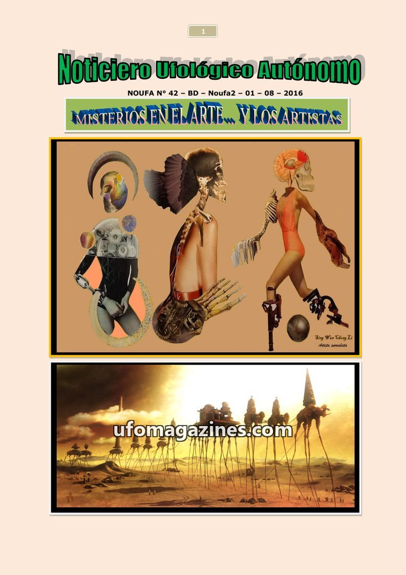 This issue of Noticiero Ufológico Autónomo delves into the intersection of art, mystery, and ufology. It features surrealist art, including works by Salvador Dalí and Sing Wan Chon