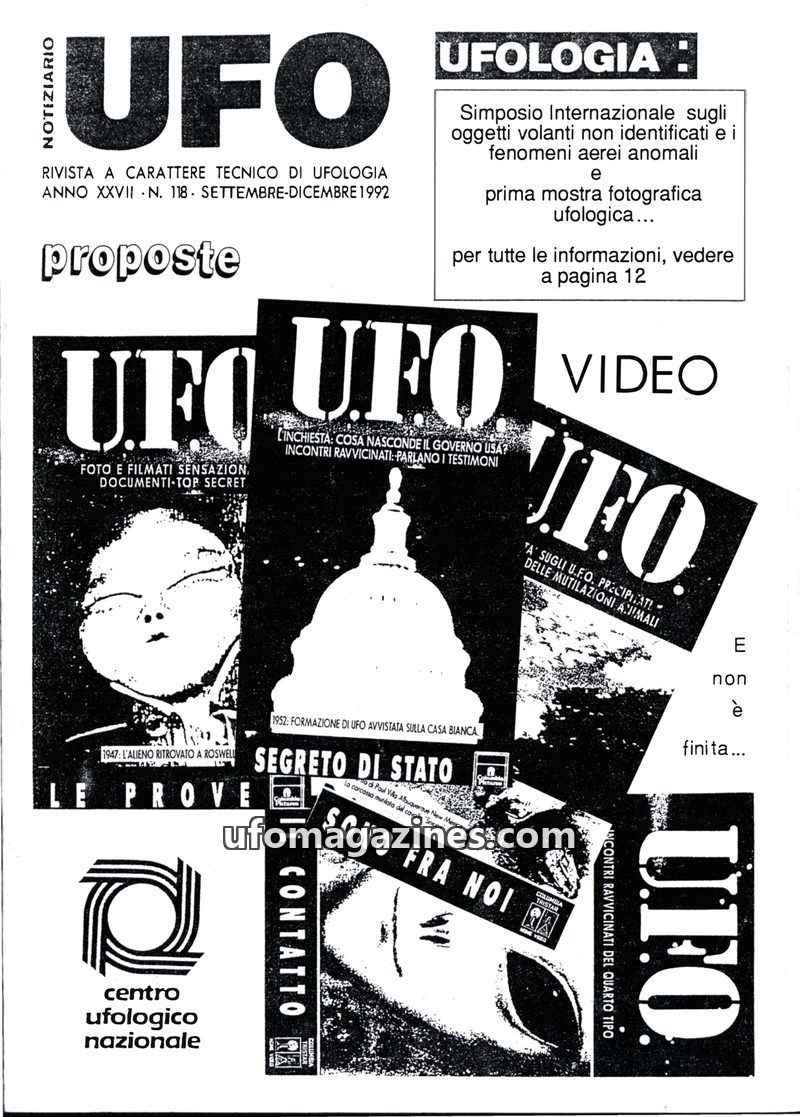 This issue of Notiziario UFO, dated September-December 1992, announces a new computer-assisted layout for improved readability and professional appearance. It features articles dis