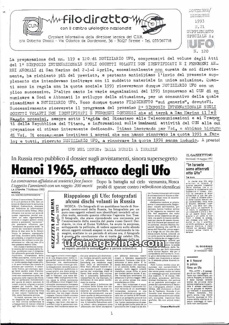 This issue of Filodiretto, a supplement to UFO Notiziario, covers recent UFO sightings and related information. It highlights the declassification of Soviet-era UFO files, includin