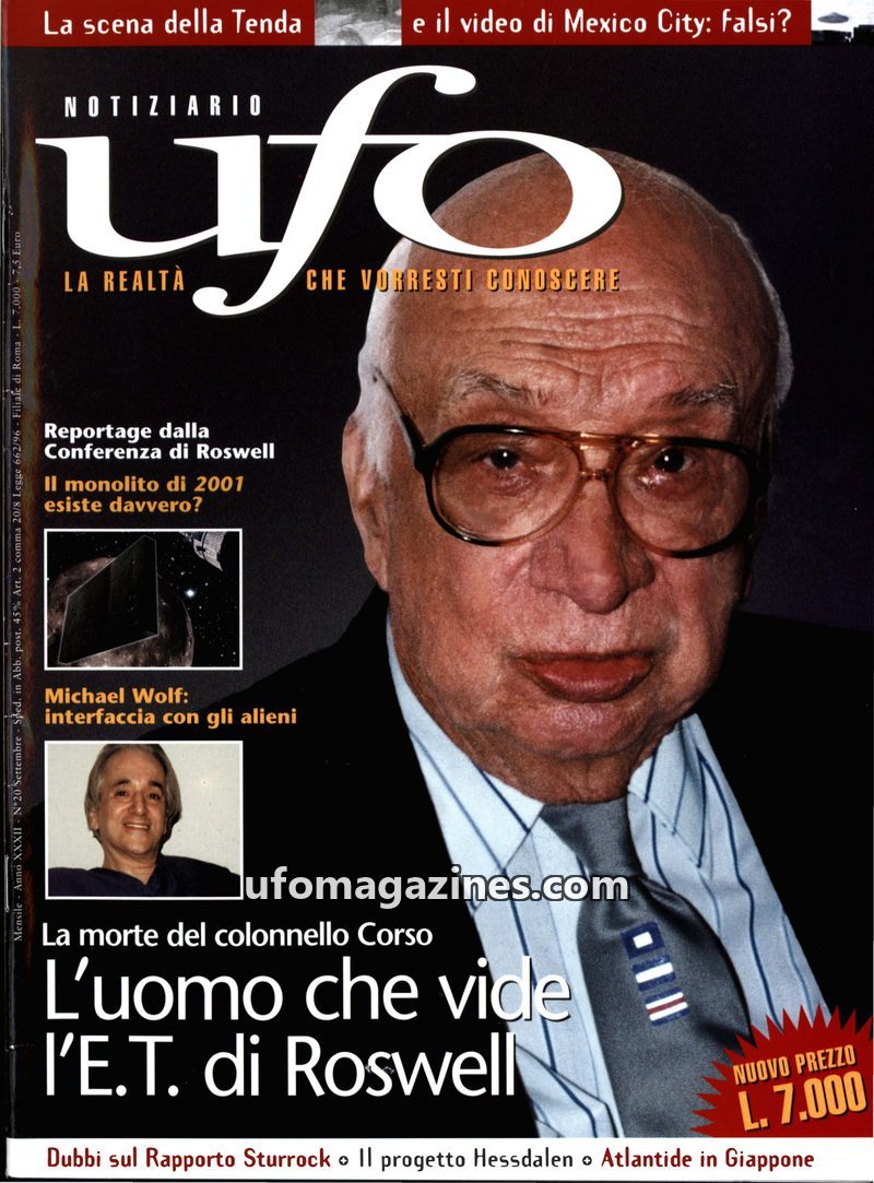This issue focuses on the death of Colonel Philip J. Corso, a former US Army officer who claimed to have knowledge of the Roswell incident and extraterrestrial technology. It featu
