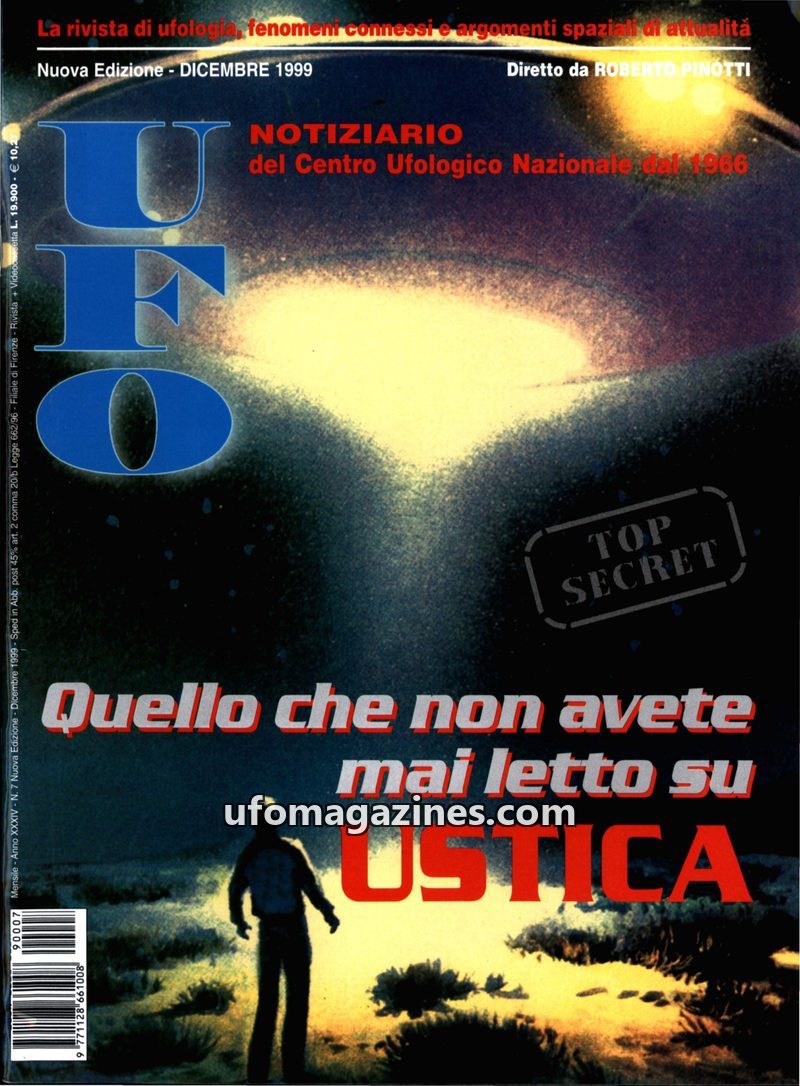 This issue of UFO Notiziario from December 1999 focuses heavily on the 'Ustica' case, promising revelations not previously published. It also includes a wide range of UFO sighting