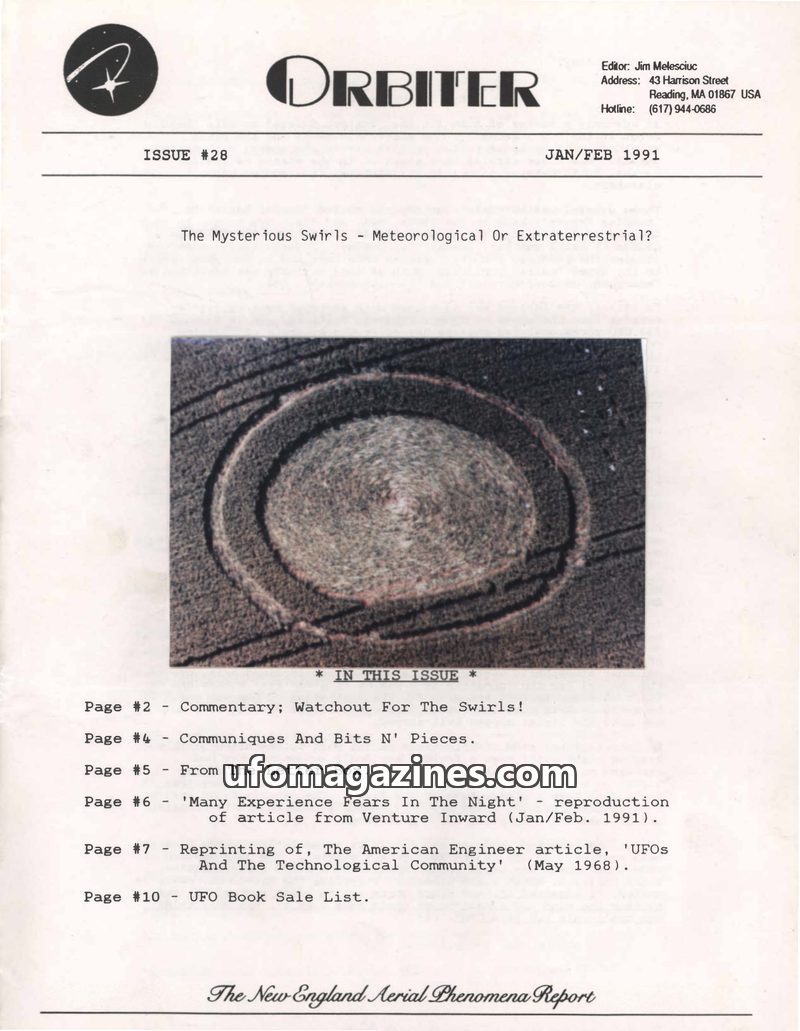 The Jan/Feb 1991 issue of Orbiter magazine delves into the phenomenon of 'mysterious swirls,' questioning their meteorological or extraterrestrial origins. It discusses their appea