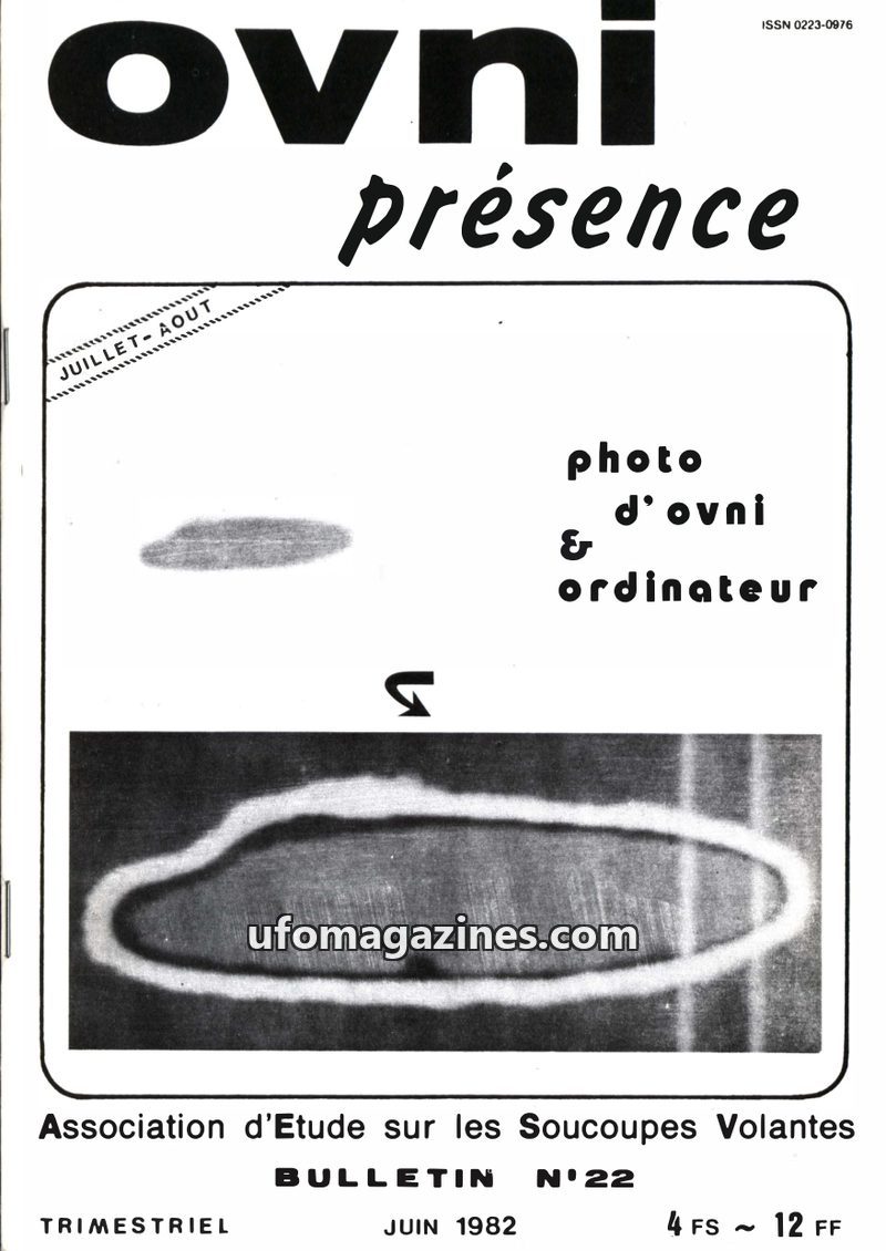 This issue of Ovni Présence (No. 22, June 1982) focuses on the intersection of ufology with computers and photography, featuring an interview with Michel Monnerie who advocates for