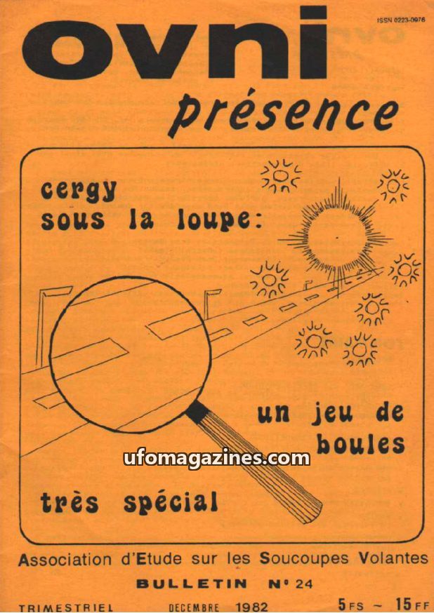 This issue of Ovni Présence focuses heavily on the Cergy-Pontoise UFO case, critically examining the evidence, including alleged physical effects like soil induction and elevated c