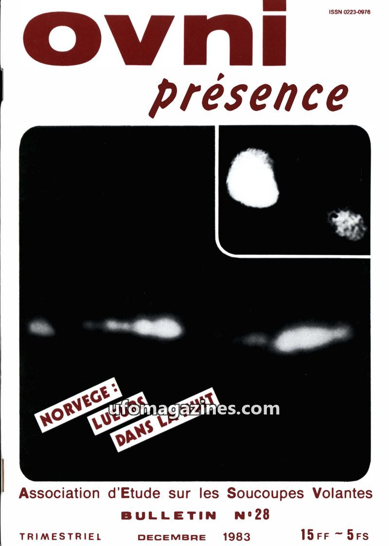 This issue of Ovni Présence (December 1983) focuses on UFO sightings in Norway, particularly the Hessdalen lights phenomenon, with detailed observations and witness accounts. It fe