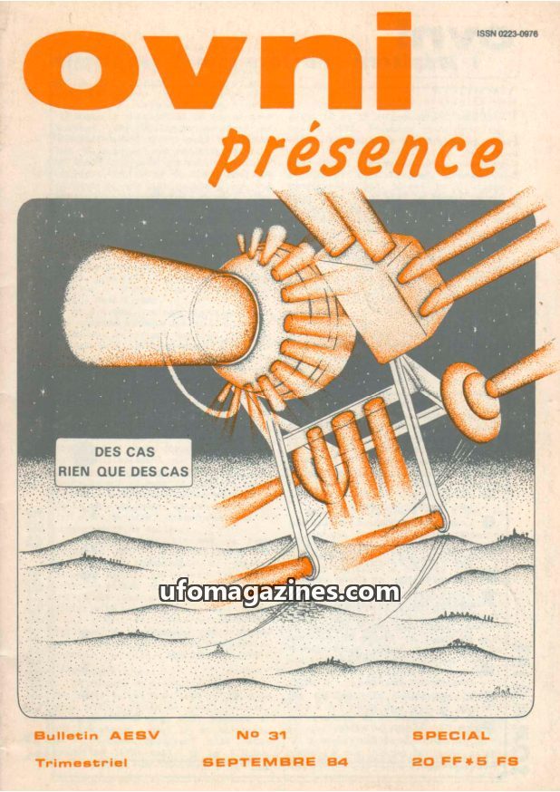 This issue of Ovni Présence focuses on the 1981 Trans-en-Provence UFO landing case, revisiting the event ten years later. It includes an in-depth analysis of soil and plant samples