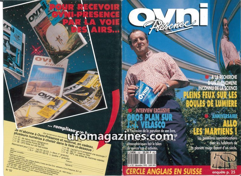 This issue of Ovni Présence focuses on the official investigation of UFO phenomena in France, featuring an interview with Jean-Jacques Velasco, head of SEPRA. It delves into histor