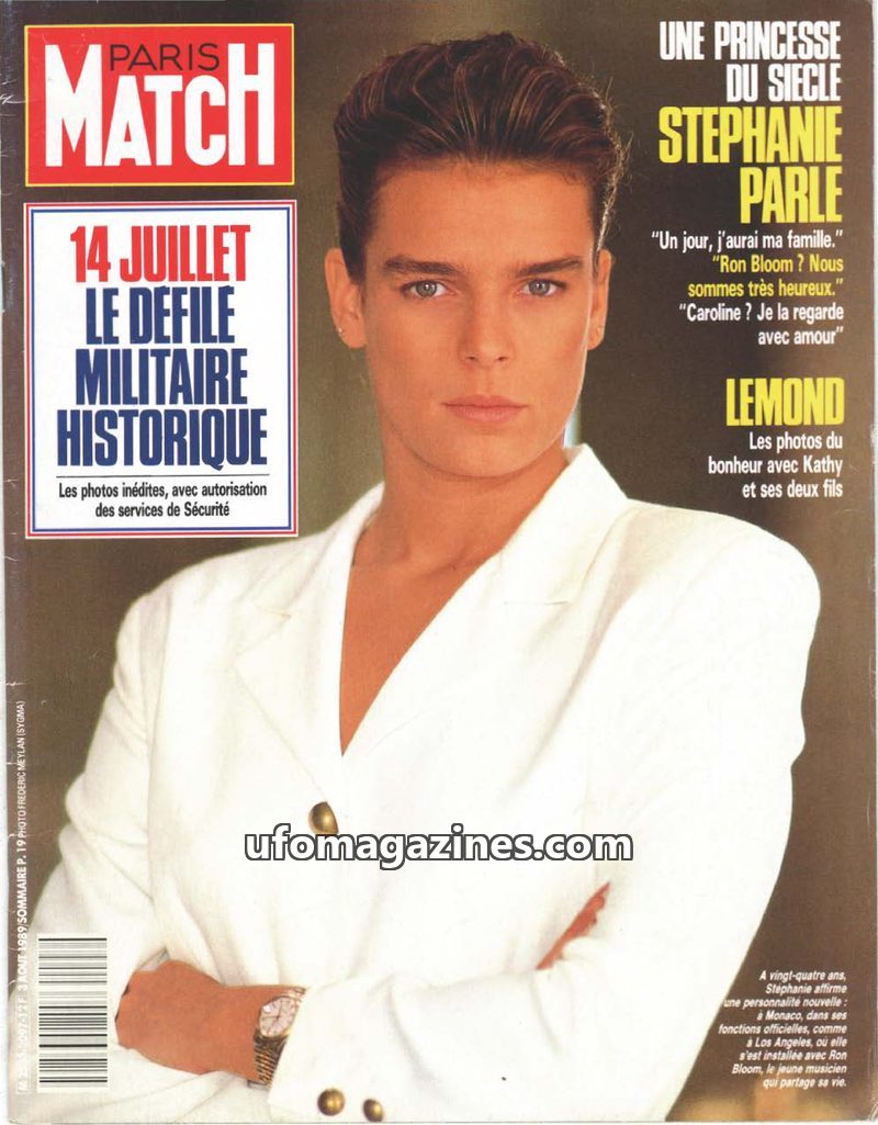 This issue of Paris Match covers Princess Stephanie's personal life and views, a historical military parade from July 14th, and a comprehensive exploration of the UFO phenomenon. T