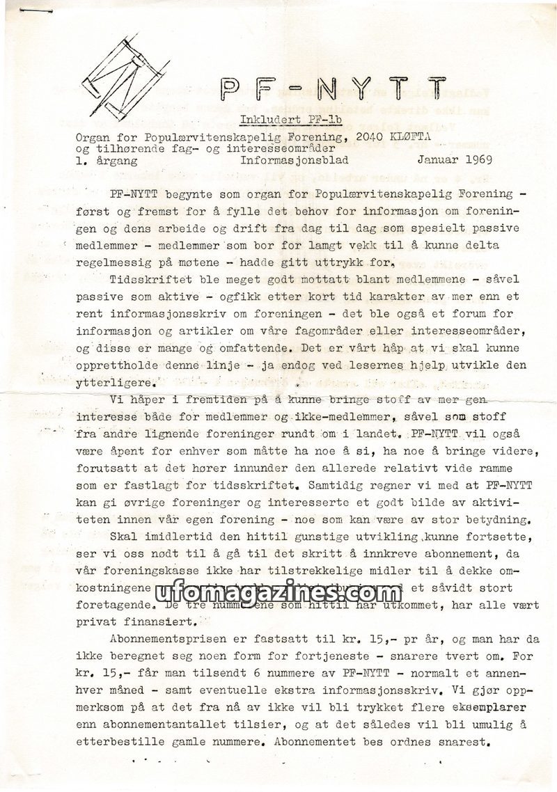 This issue of PF-NYTT, the information bulletin for the Popular Scientific Association, marks its first year of publication. Initially created to inform passive members, it has evo