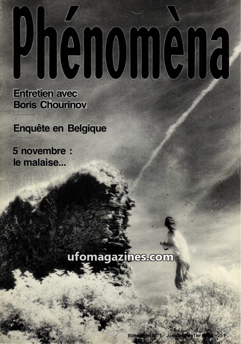 The first issue of Phénomèna magazine, published in January-February 1991, focuses on the widespread UFO sightings of November 5, 1990. It includes an interview with Boris Chourino