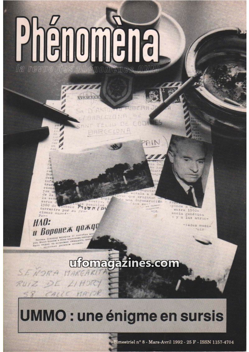 This issue of Phénomèna delves into the 'Europe of UFOs' and the resolution of the Ummo mystification. It reveals that José Luis Jordàn Peña confessed to writing the Ummo letters,