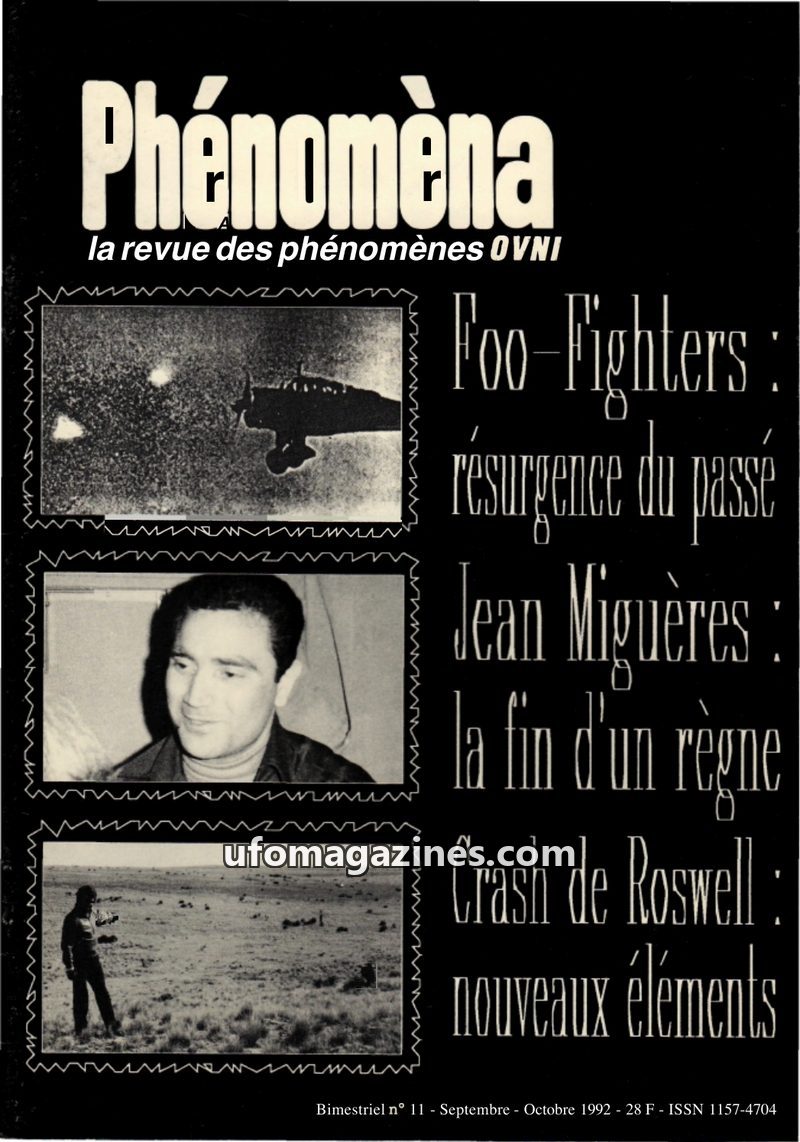 This issue of Phénomèna, dated September-October 1992, delves into several key UFO phenomena. It features an article on 'Foo-Fighters,' mysterious aerial phenomena observed during