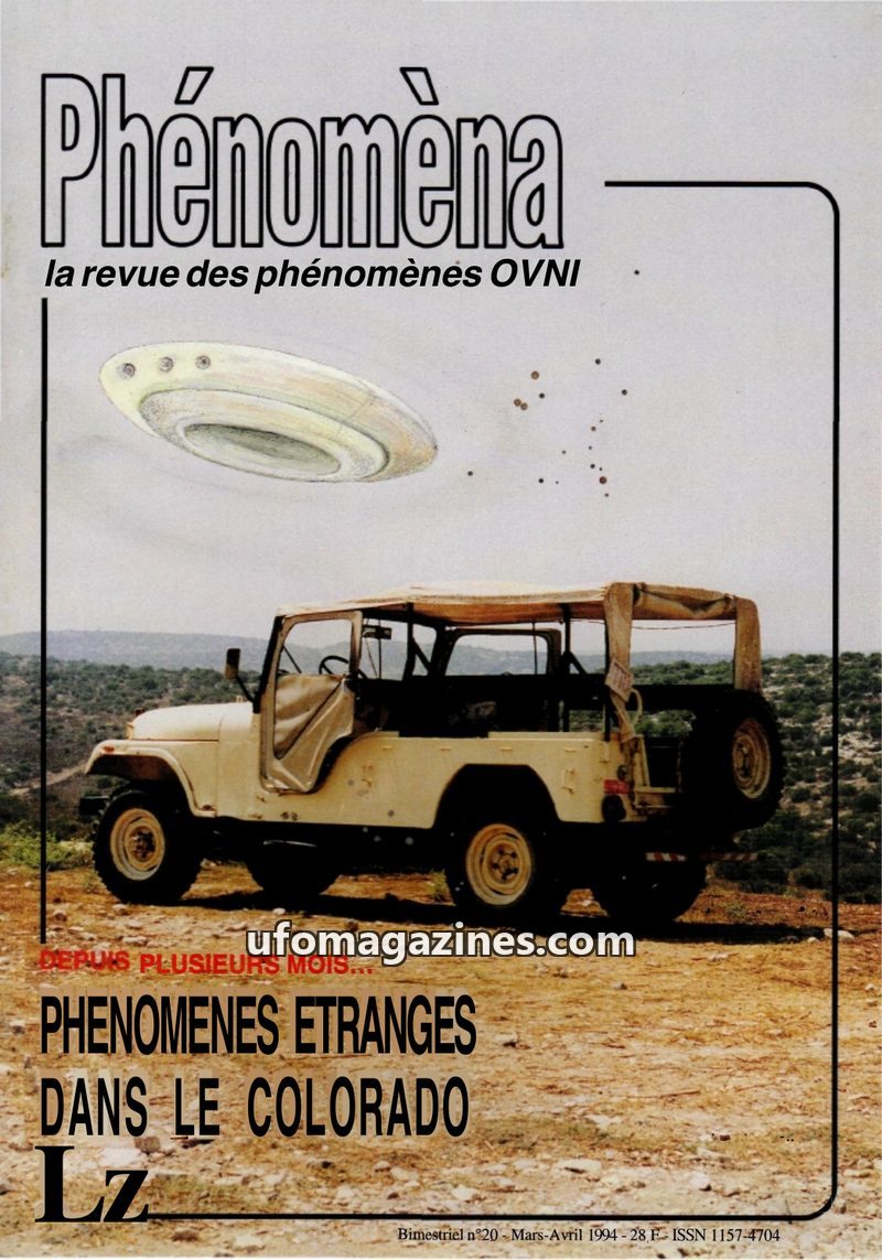 This issue of Phénomèna focuses on unexplained phenomena in Colorado during late 1993 and early 1994. Reports include sightings of UFOs, strange lights, and unidentified helicopter