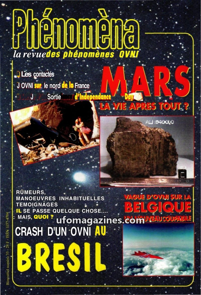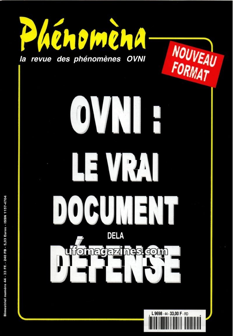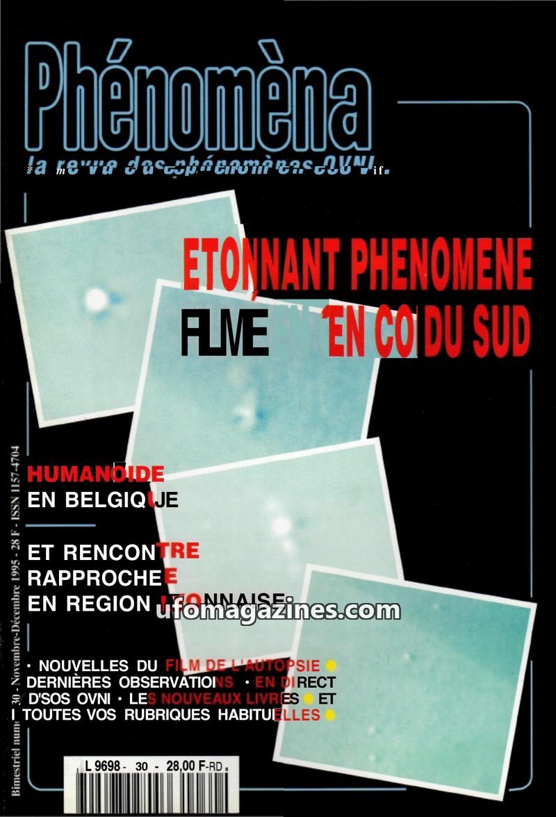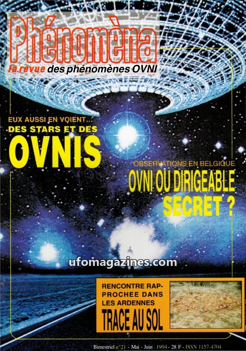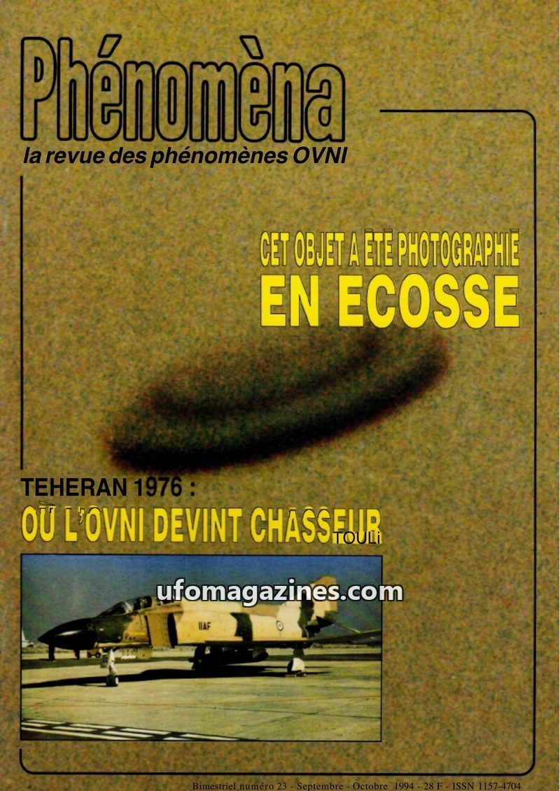This issue of Phénomèna magazine (Sept-Oct 1994) highlights a UFO photograph taken in Scotland on February 19, 1994, described as one of the best ever captured. It also revisits th