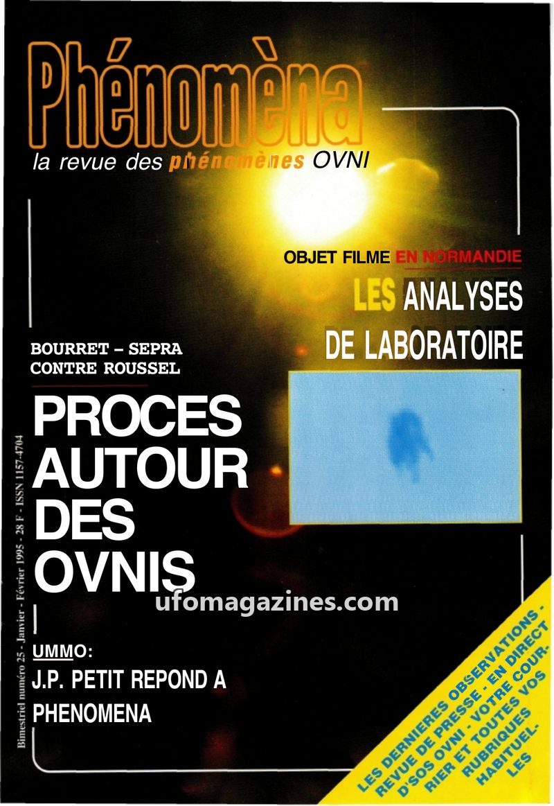 This issue of Phénomèna (Jan-Feb 1995) focuses on the scientific analysis of a UAP filmed in Normandy, France, on May 14, 1994. The analysis, conducted by the CNRS, used image proc