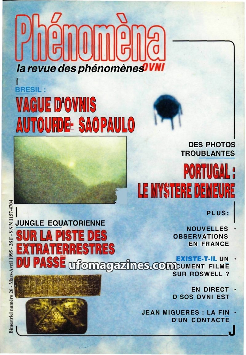This issue of Phénomèna magazine from March-April 1995 delves into several UFO cases. A significant report details a wave of UFO sightings in Sao Paulo, Brazil, and another focuses
