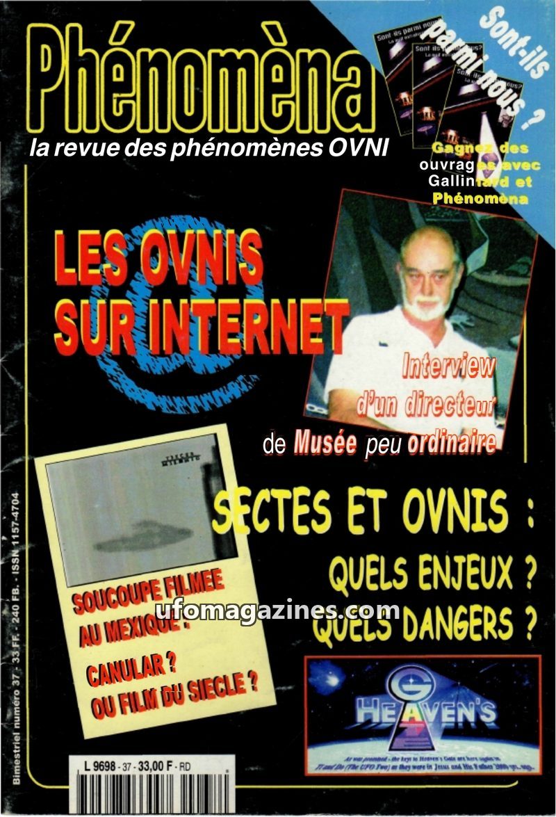 This issue of Phénomèna, a UFO magazine, focuses on the growing presence of UFO-related information on the Internet. It discusses the history and structure of the internet, highlig