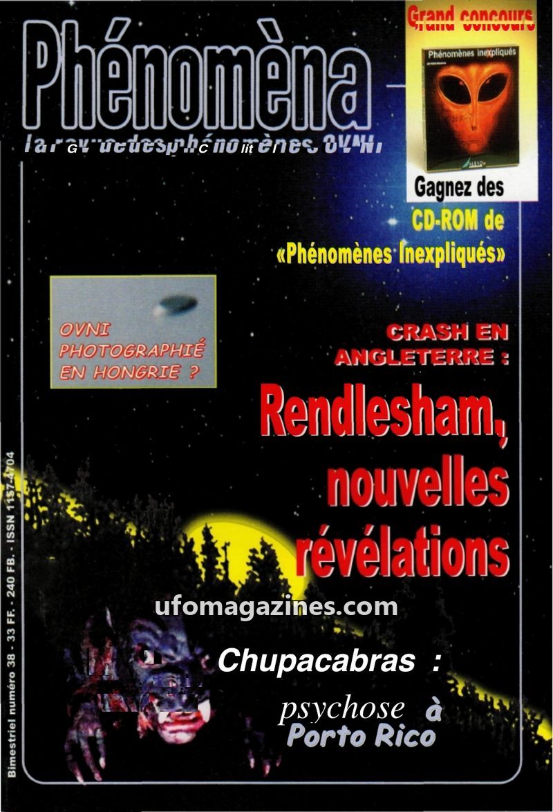 This issue of Phénomèna delves into the Rendlesham Forest incident, re-examining evidence and witness accounts, including an interview with Charles Hall. It also covers the Chupaca