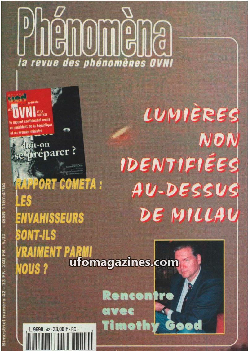This issue of Phénomèna focuses on several key UFO-related events and investigations. It details the legal battle between SOS OVNI and the French Ministry of Defense, which resulte